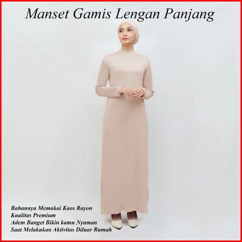 Gamis Manset Lengan Panjang Premium Bahan Kaos Rayon Super