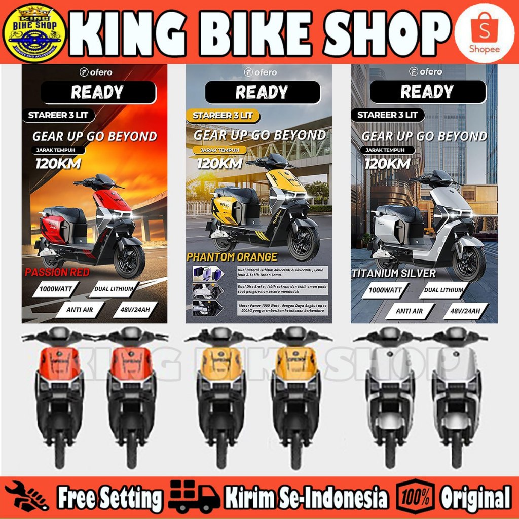 Sepeda Listrik OFERO STAREER 3 LIT LITHIUM 1000 Watt Electric E Bike (BISA 2 BATERAI)