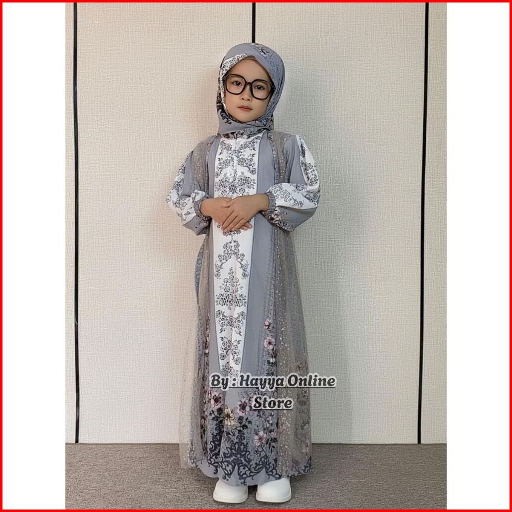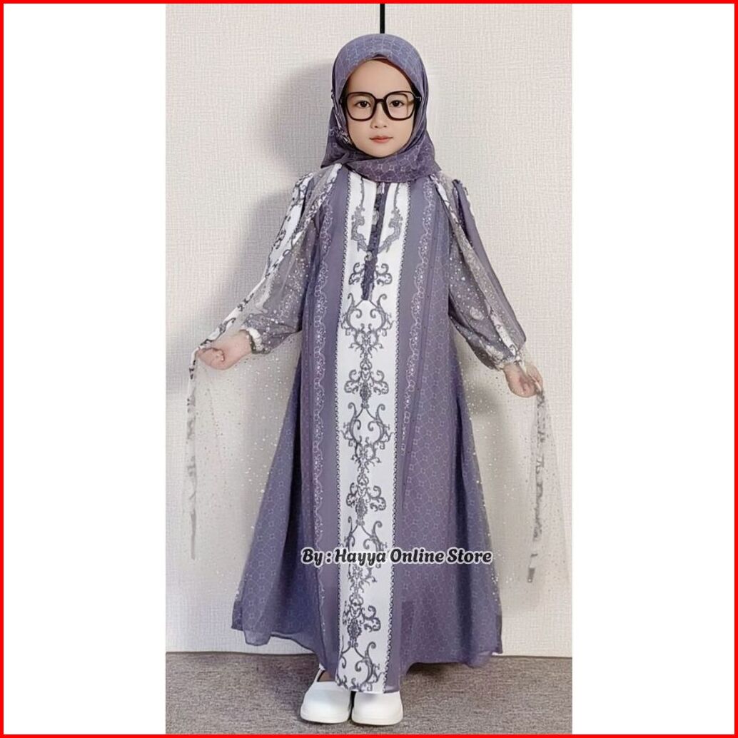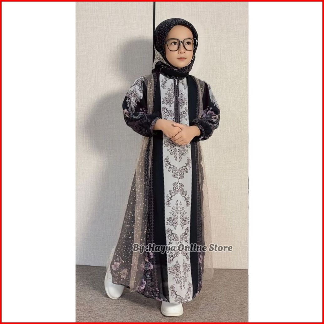 Gamis Ceruty Motif Sultan Usia 3-10 Tahun Bahan Ceruty Babydoll Mix Tille Full Puring Gamis Anak Lebaran Cantik Free Hij