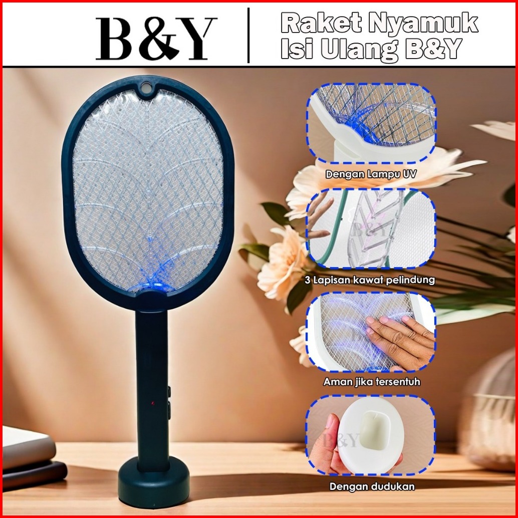 Raket Nyamuk Elektrik Cas Ori Tahan Lama Murah Awet Charger Usb 2 In1 Raket Nyamuk Standing
