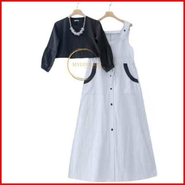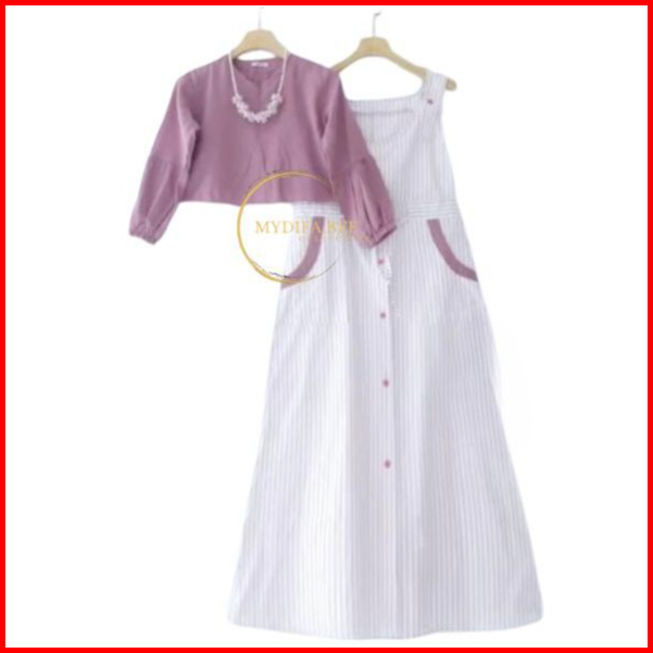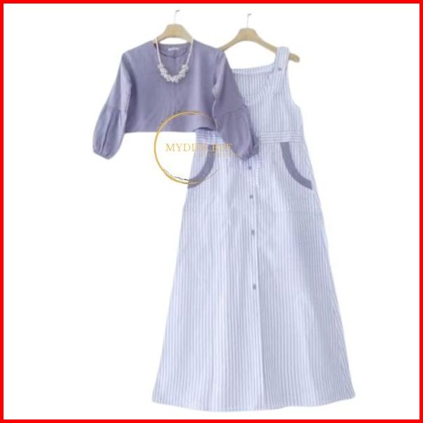 Setelan Drtess Anak Prempuan 5-13thn Terbaru 2025-evely Set Kids Crinckle Combi Katun Salur Kekinian