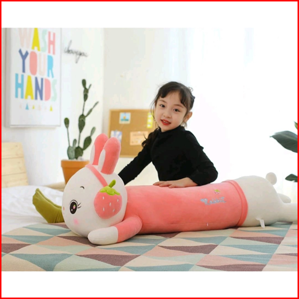 Boneka Bantal Guling Kelinci Boneka Rabbit Bunny Jumbo Pakai Bando Strawbery