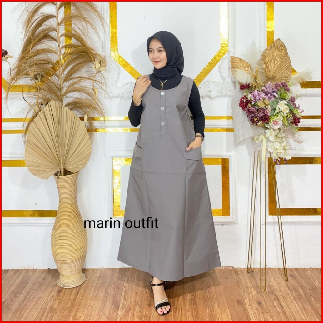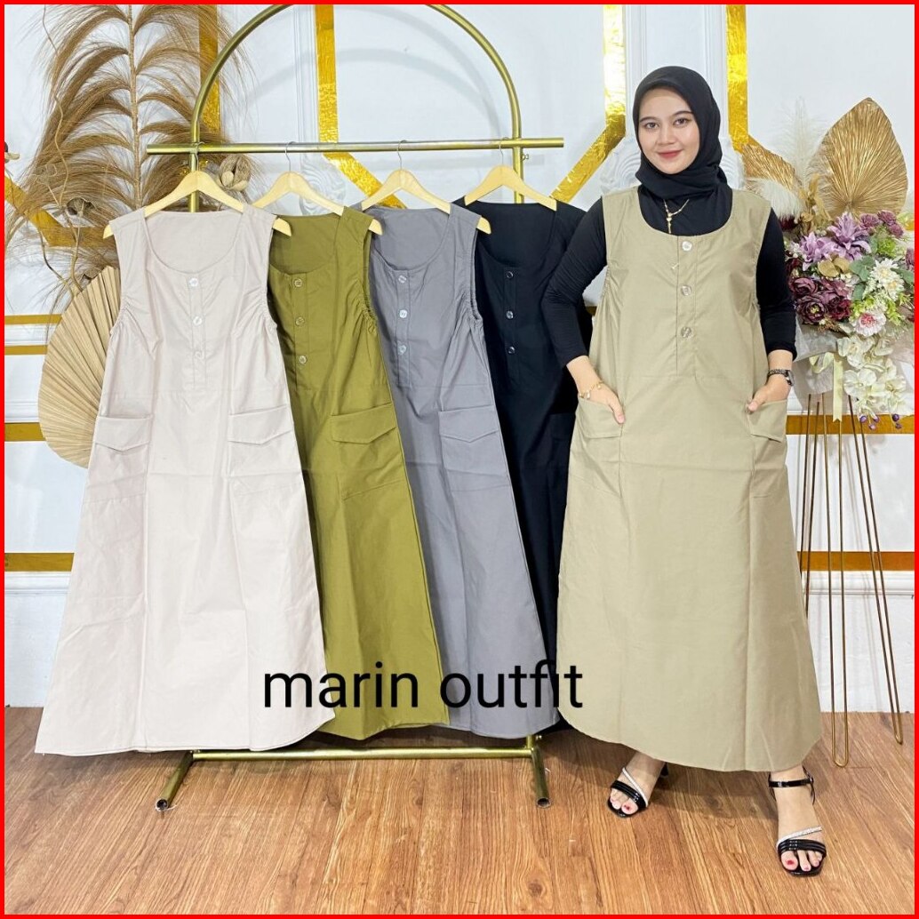 Marin Outfit Overal Temi Kancing Overall Dress Overall Jumpsuit Wanita Bahan Cotton Twill Tebal