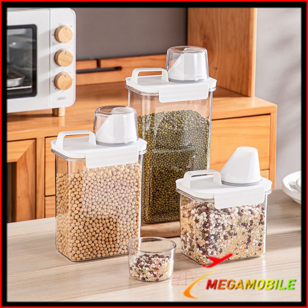 Mm - Toples Penyimpanan Makanan 1100ml Serbaguna Dengan Gelas Ukur Tempat Penyimpanan Cereal Plastik Bening Acrylic 1800