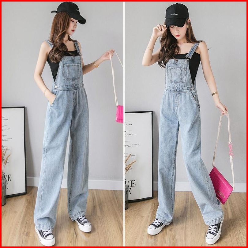 Murah Lebay - Overall Denim Panjang Jumpsuit Celana Panjang Jumpsuit Wanita Fashion Simple Lucu Jumpsuit Longgar Versi K