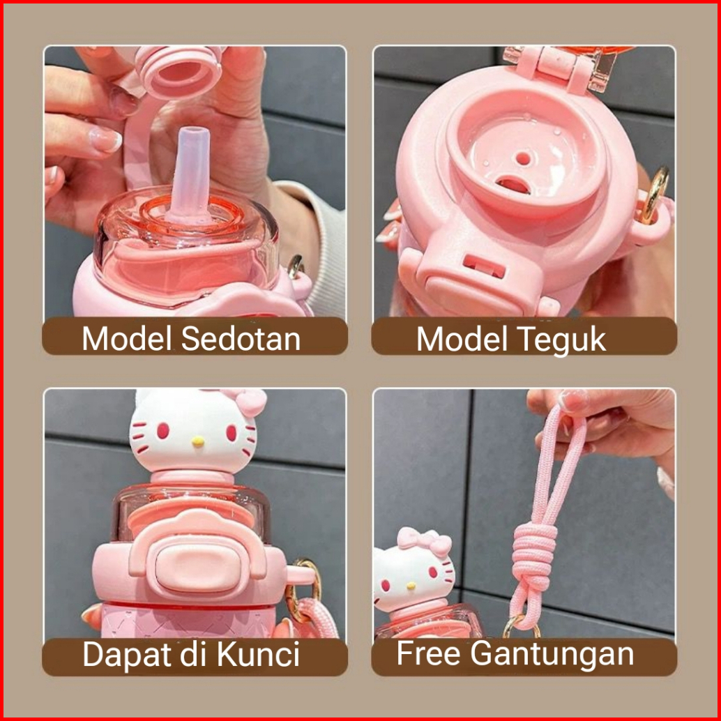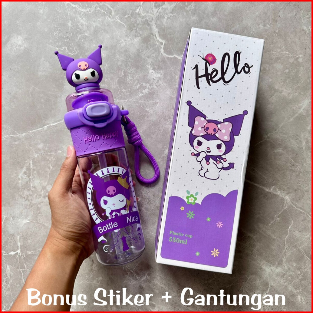 Botol Minum Tritan Karakter Sanrio Kuromi Melody 550ml 2 Cara Minum Sedot Dan Teguk Gratis Gantungan