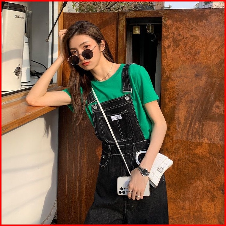 Jumpsuit Jeans Wanita Warna Hitam Yang Longgar
