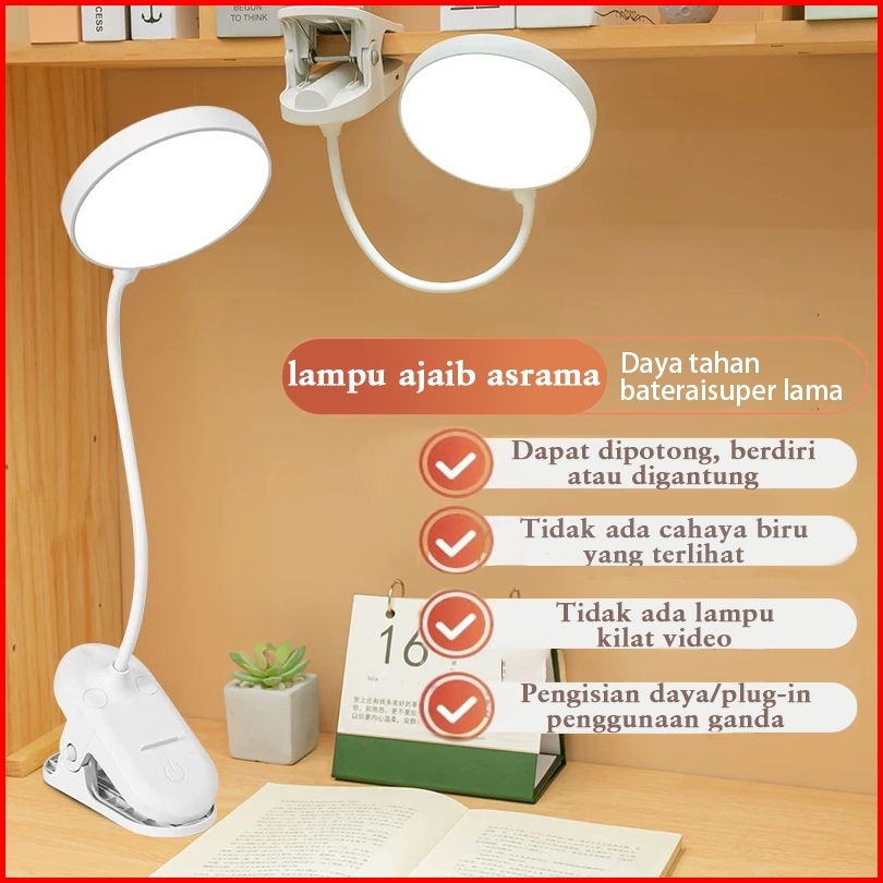 Multifung Lampu Belajar Clip Tircolour Sentuh Usb 2 In 1 Lampu Meja 3 Warna Cahaya Bateral Lampu