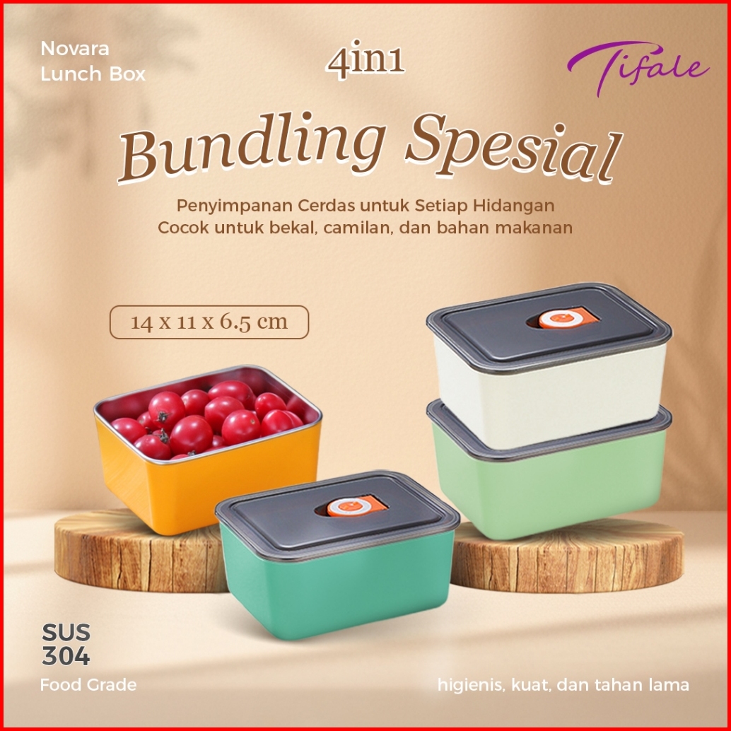 Tifale Kotak Makan Bekal Stainless Steel 4 Pcs Kedap Udara Lunch Box Penyimpanan Makanan Kotak Mpasi