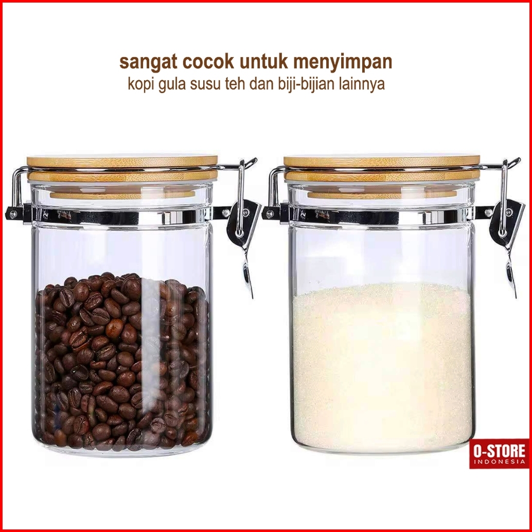 Toples Kedap Udara Toples Kaca Dan Tutup Kayu Dan Seal Toples Kopi Gula Teh Coffee Canister Glass Storage Toples Biji Ko