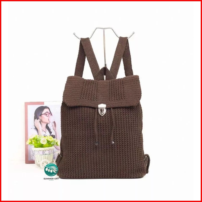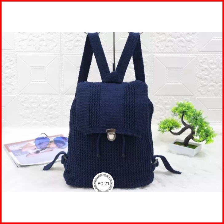 Tas Rajut Ransel Wanita Polos Bahan Cotton Polyester