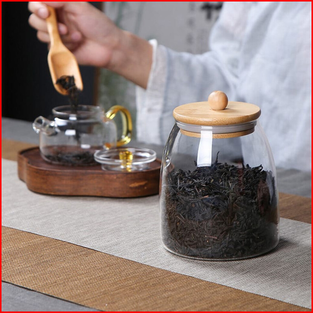 Toples Kayaru Kaca Kedap Dengan Tutup Pegangan Bulat Bambu