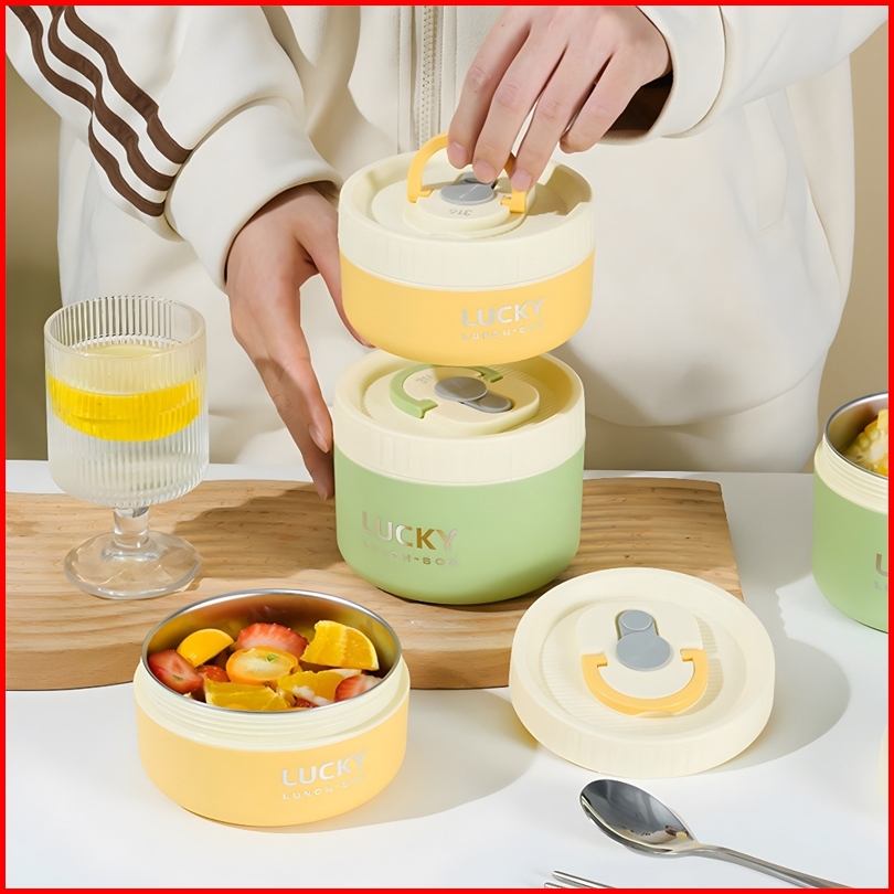 Kotak Makan Portable Tahan Panas Kotak Bekal Kotak Makan Container Sealed Round Stainless Lunch Box Tahan Bocor Kotak