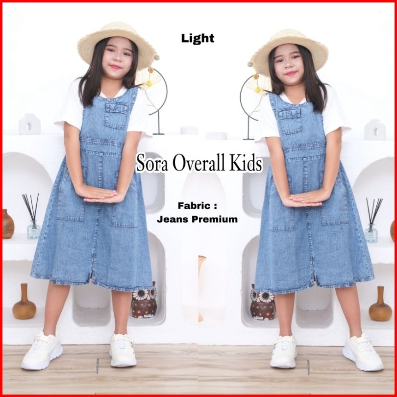 Sora Overall Kids Fashion Baju Dress Jeans Anak Perempuan Usia 4-6 Tahun