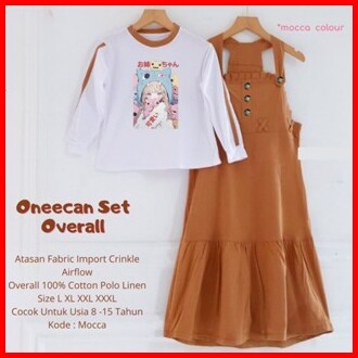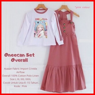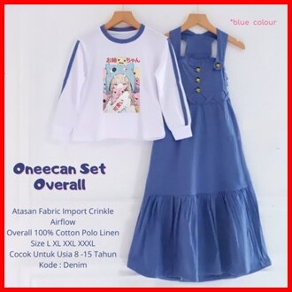 New Setelan Rok Anak Perempuan Terbaru Linen Motif Cartoon Overall Anak Oneechan Set Free Inner