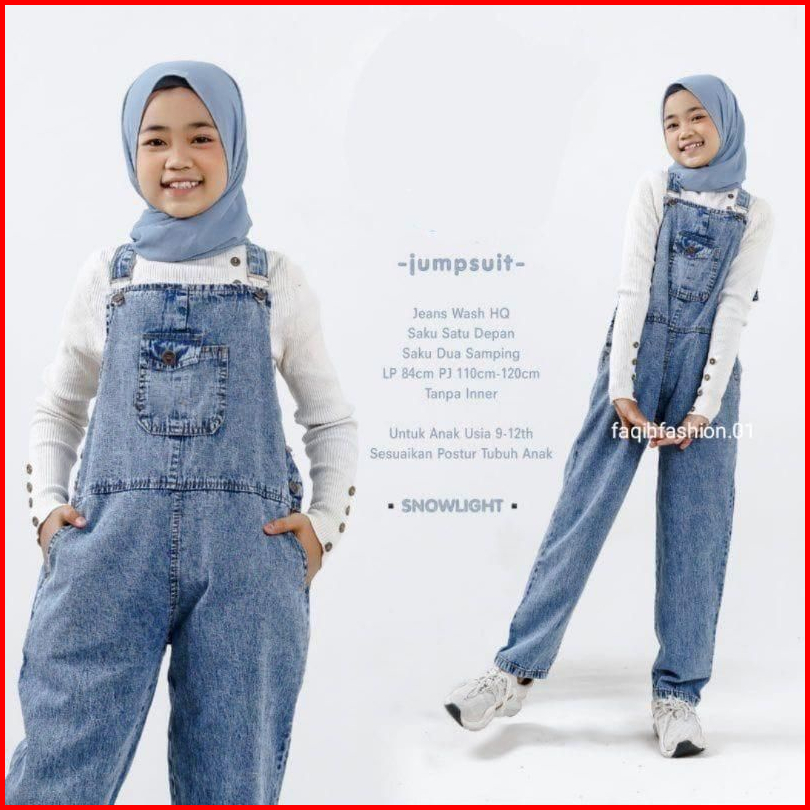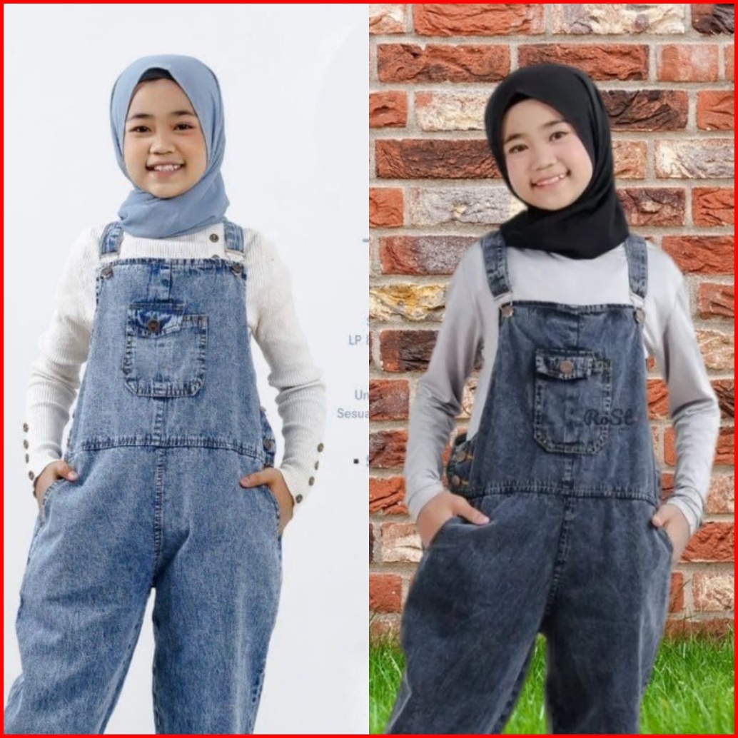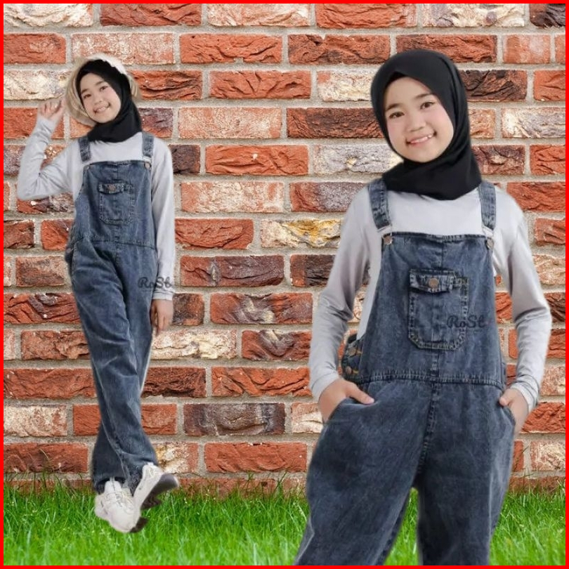 Romper Jeans Anak Perempuan Romper Usia 6-13 Tahun Jumpsuit Celana Kodok Jeans Anak Cewek Baju Kodok Anak Overal Panjang