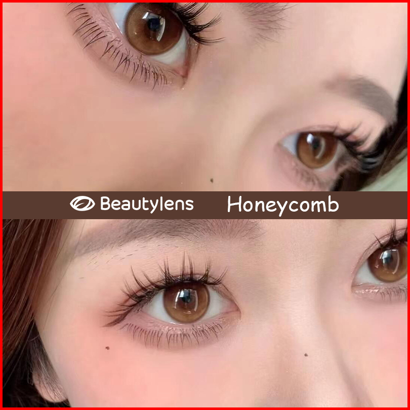 Beautylens Softlens Minus 0.00 S D -8.00 Lensa Yearly Gel Universal 14.2mm Honeycomb Milk Tea Coklat