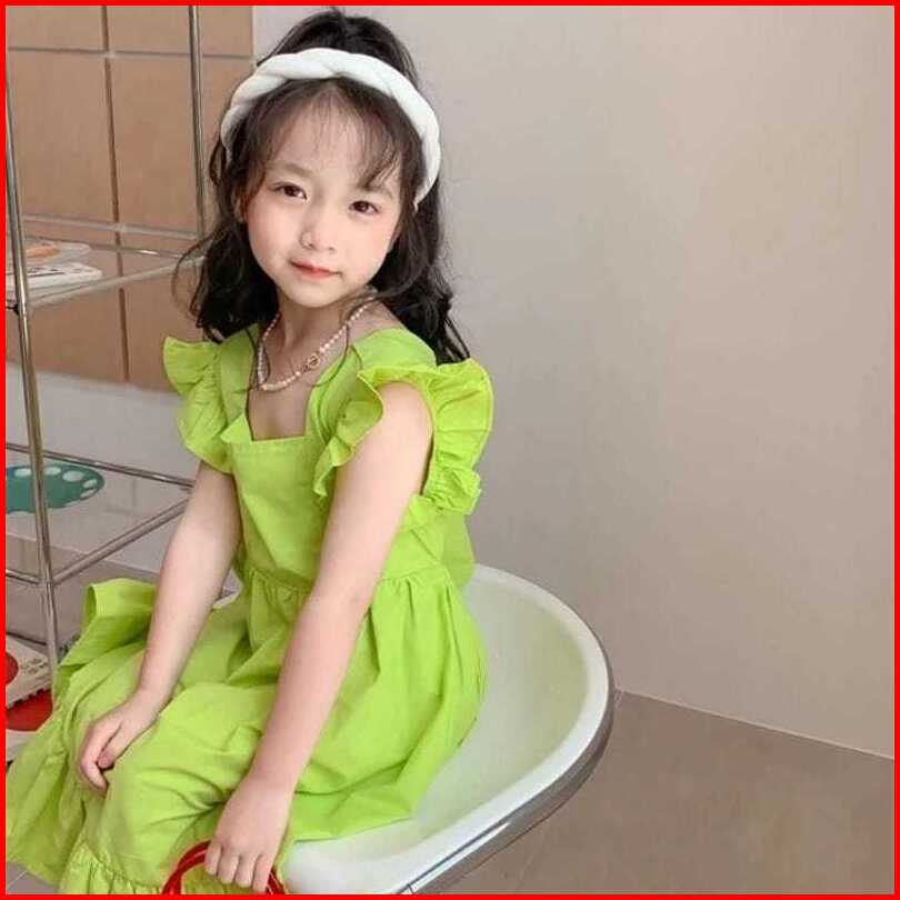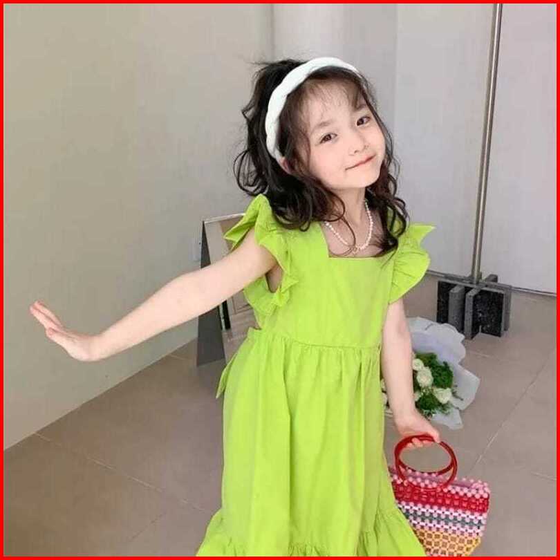 Dress Tali Belakang Anak Perempuan Katun Poplin