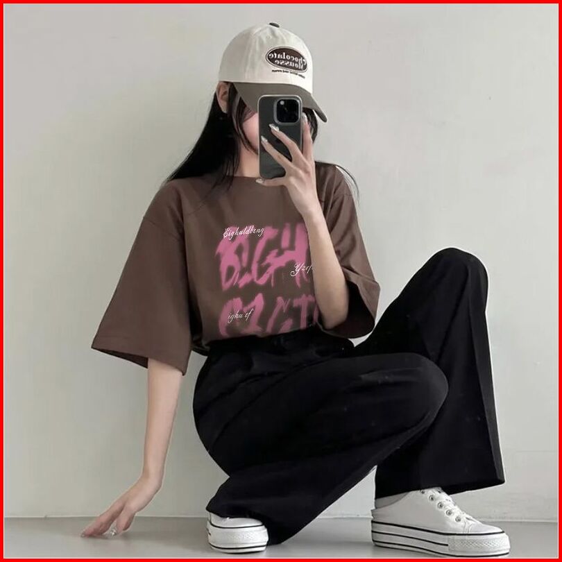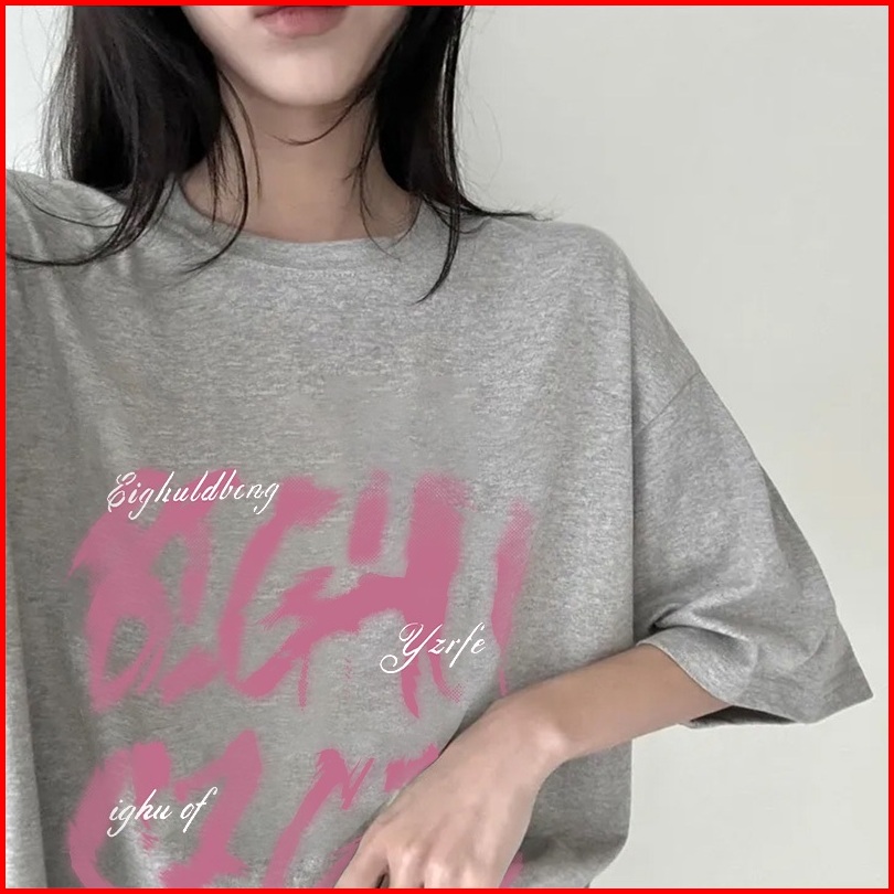 Kulor. American Style Korean Style Huruf Merah Muda T Shirt Kaos Tshirt Oversize Wanita Baju Bigsize Lengan Pendek Retro