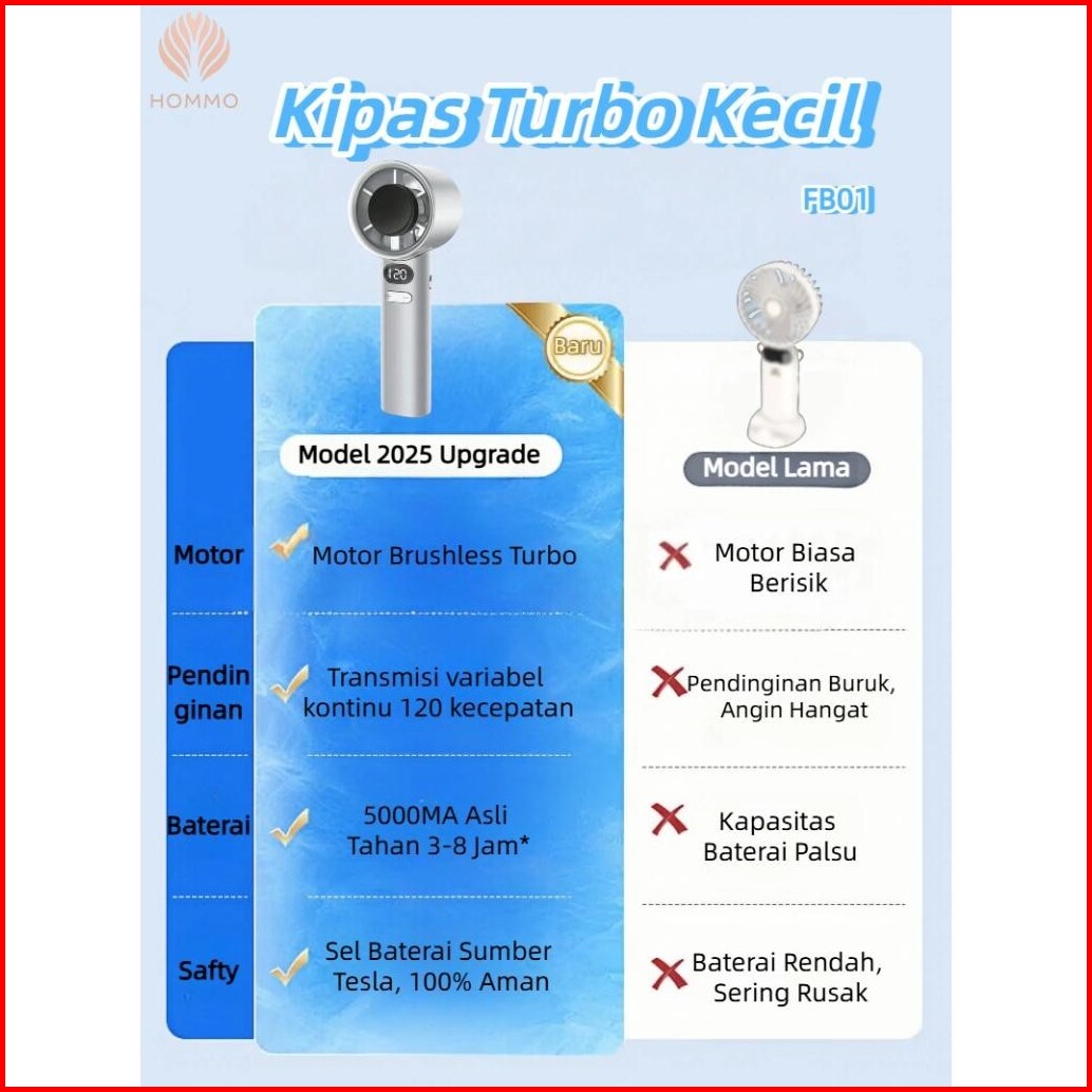 Crezona Kipas Angin Genggam Portable Usb Mini Fan Stylish Turbo 120 Level Layar Led Baterai Tahan Lama Fb01 Kipas Turbo