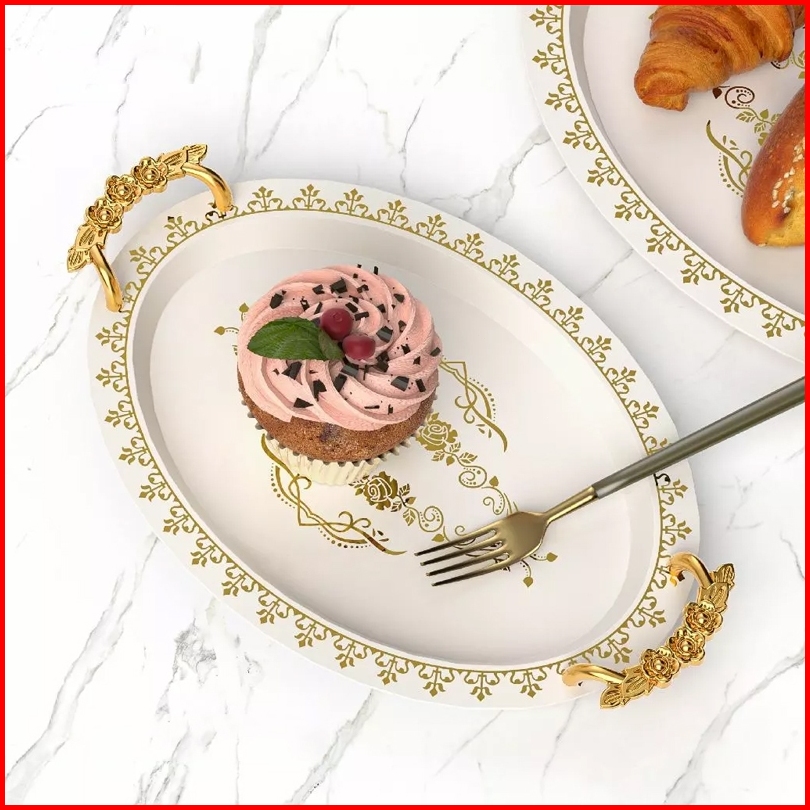 3pcs Nampan Mewah Nampan Aesthetic Persegi Panjang Nampan Nampan Aesthetic Handle - Nampan Saji Nampan Aesthetic Handle
