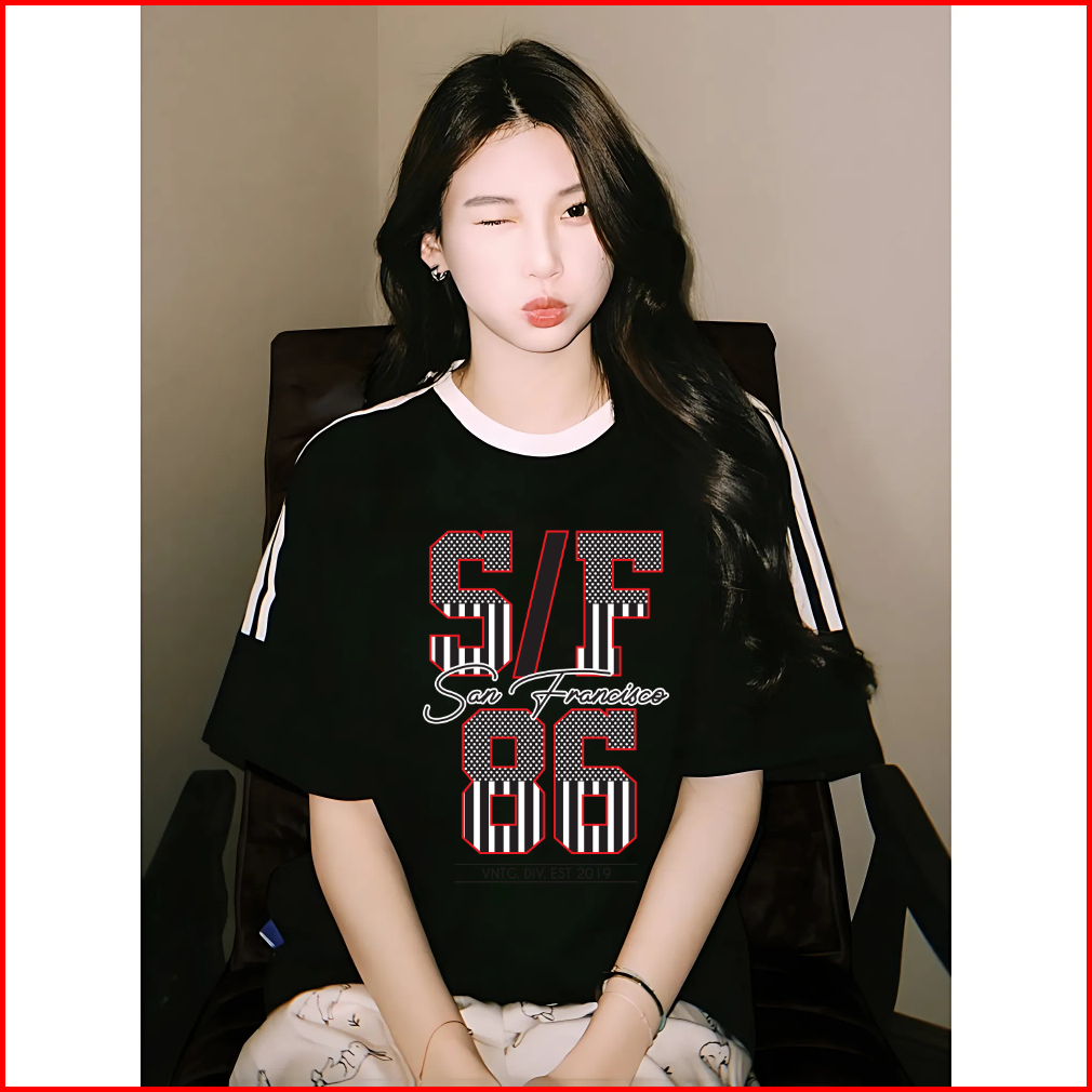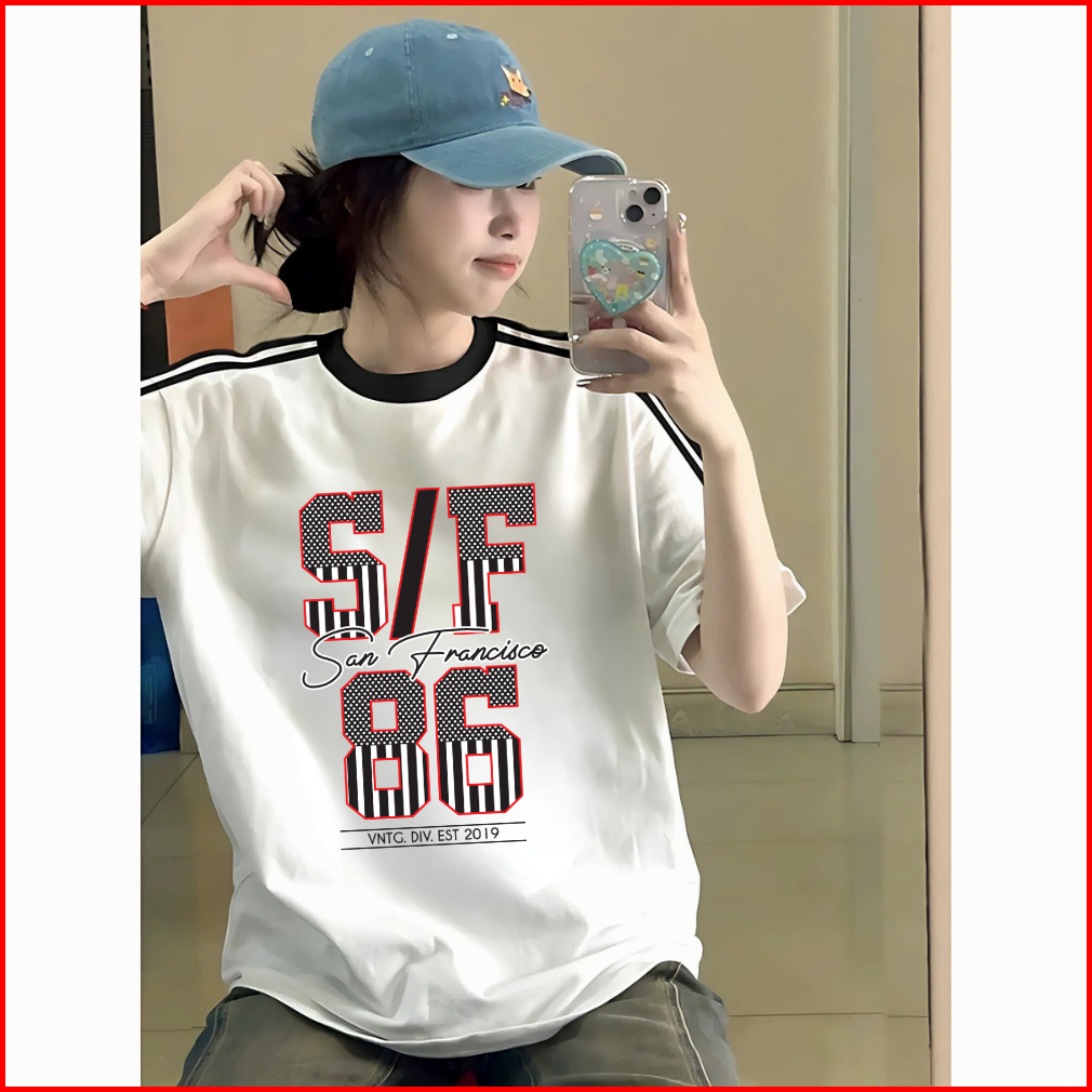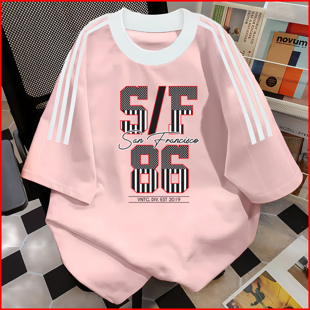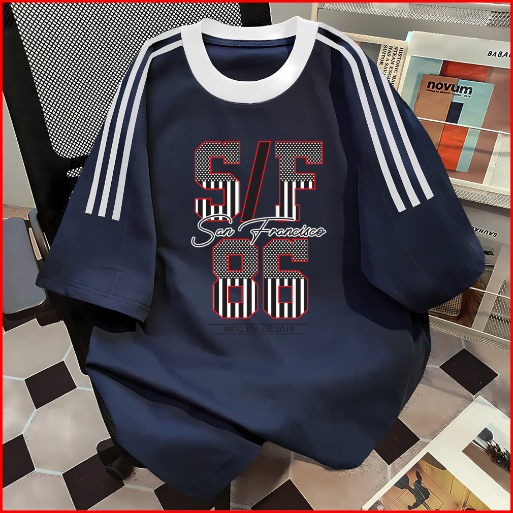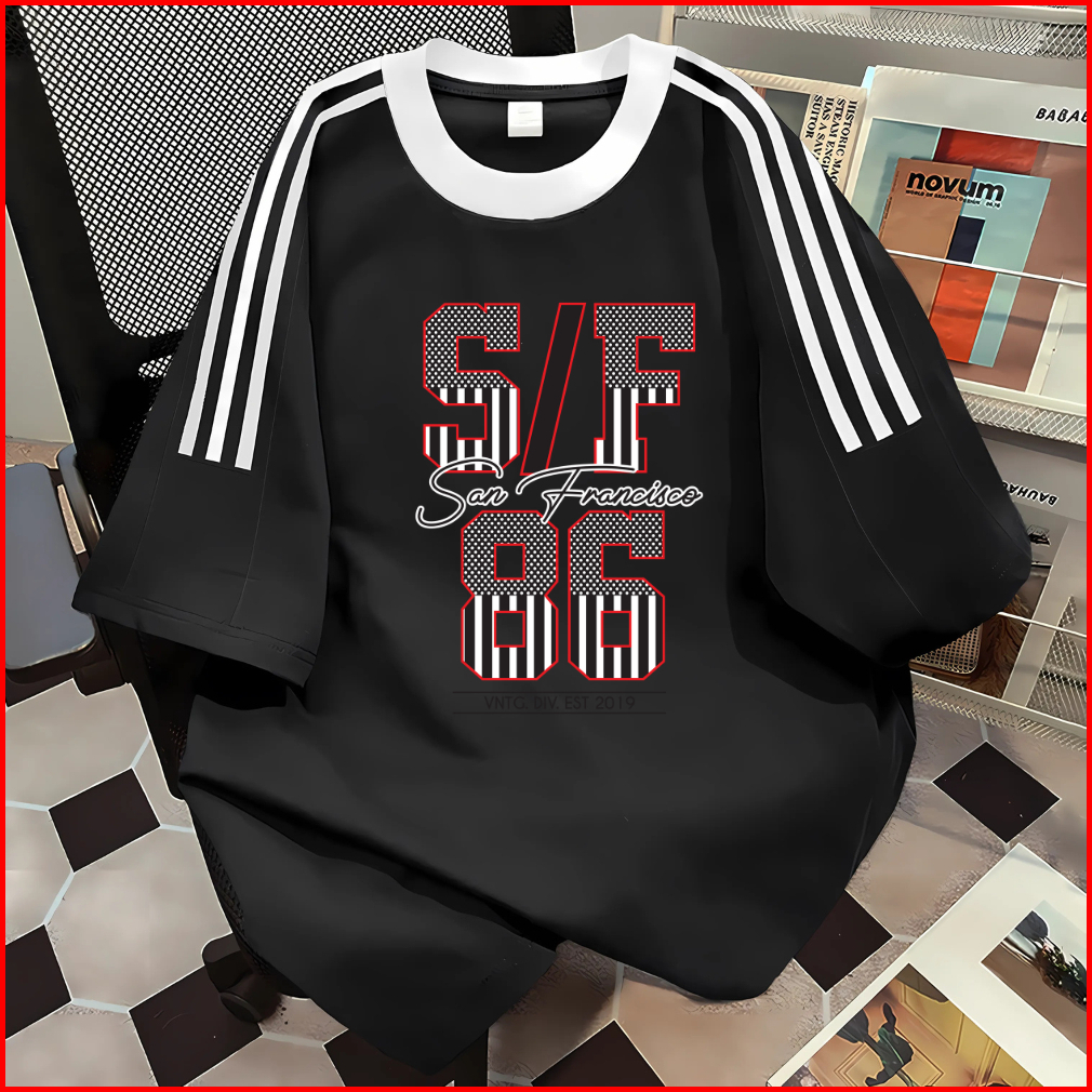 Vision Premium T-shirt Lengan Pendek Kaos Oversize Tiga Garis Korea Premium 100 Katun San Francisco Style Pria Wanita