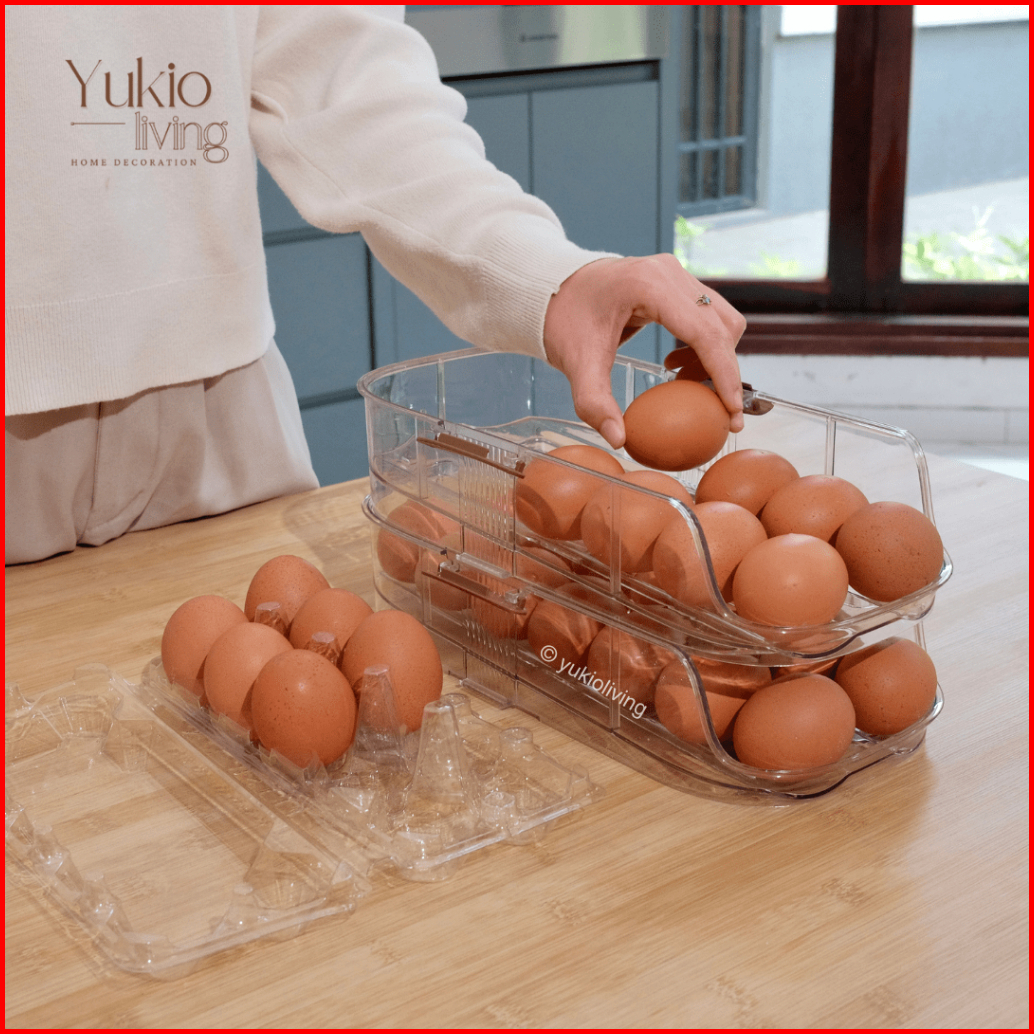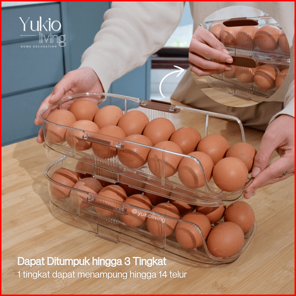 Yukio Sunny Egg Storage - Tempat Penyimpanan Rak Telur Otomatis Egg Organizer Kotak Telur Bertingkat