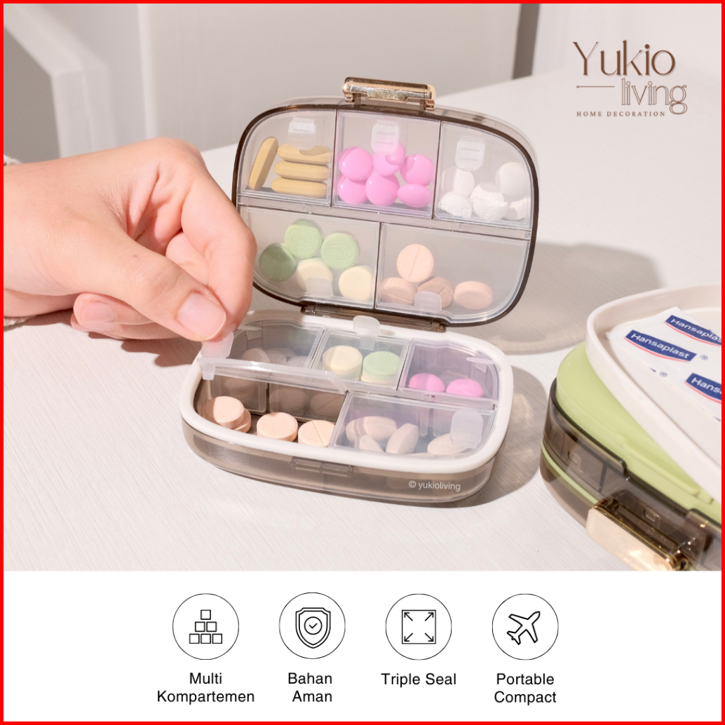 Yukio Marie Medicine Box - Kotak Obat Travel Portable 10 Sekat Premium Tempat Penyimpanan Pil Tablet