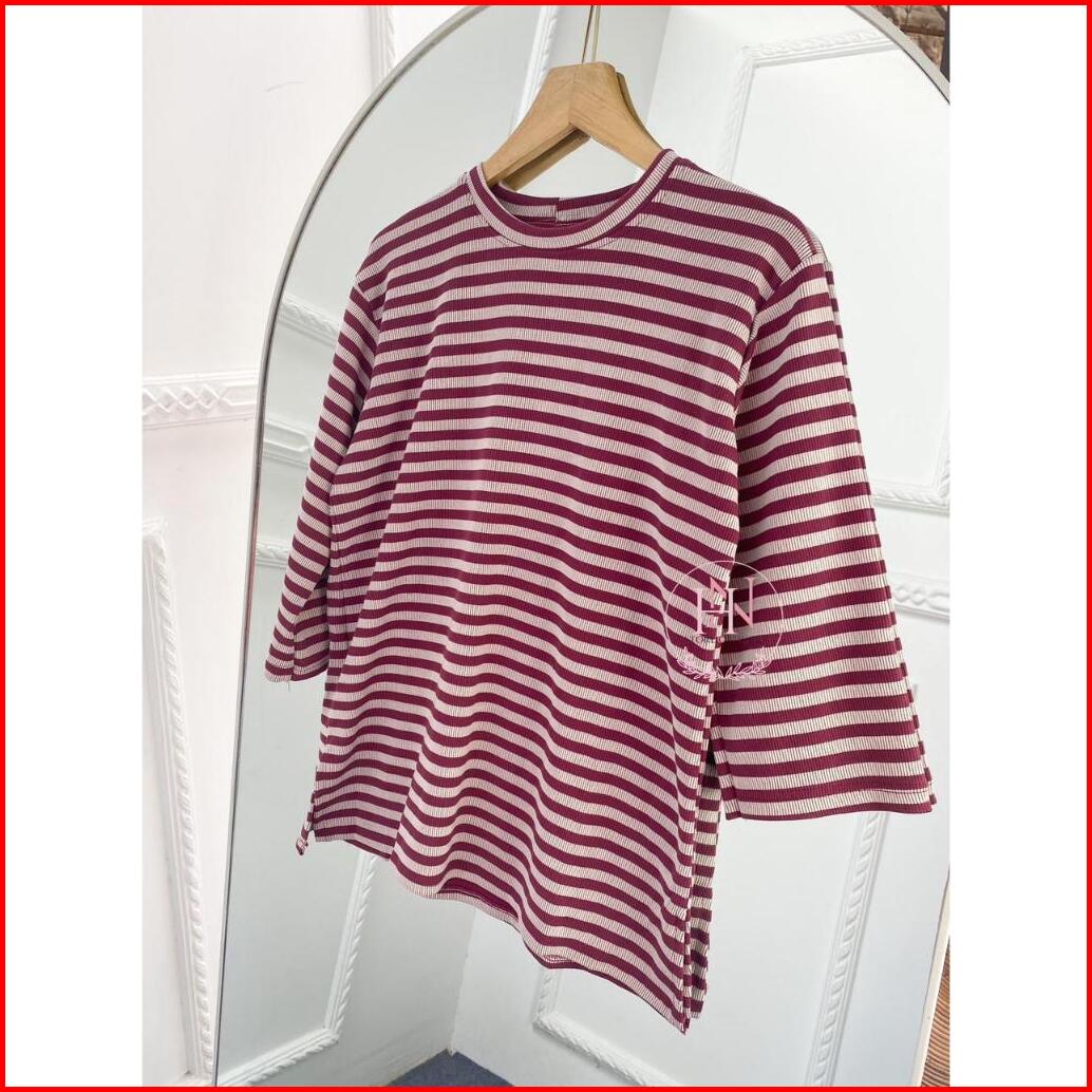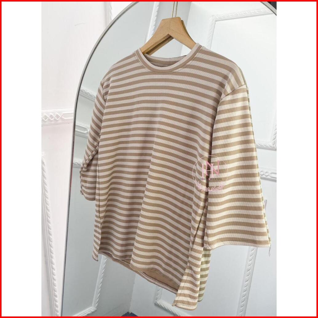 Luca Blouse Knit Kaos Wanita Santai Atasan Garis Kaos Daily