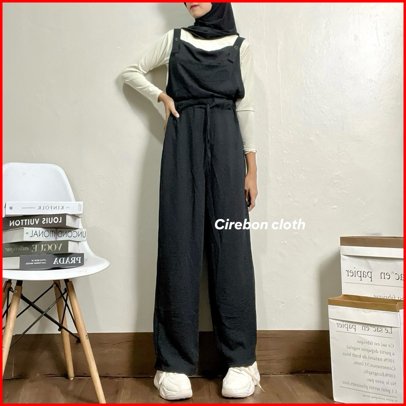 Kiyana Cirebon Cloth - Velia Overall Jumsuit Korean Long Jumpsuit Pakaian Wanita Tanpa Lengan Jumsuit Wanita Baju Kodok