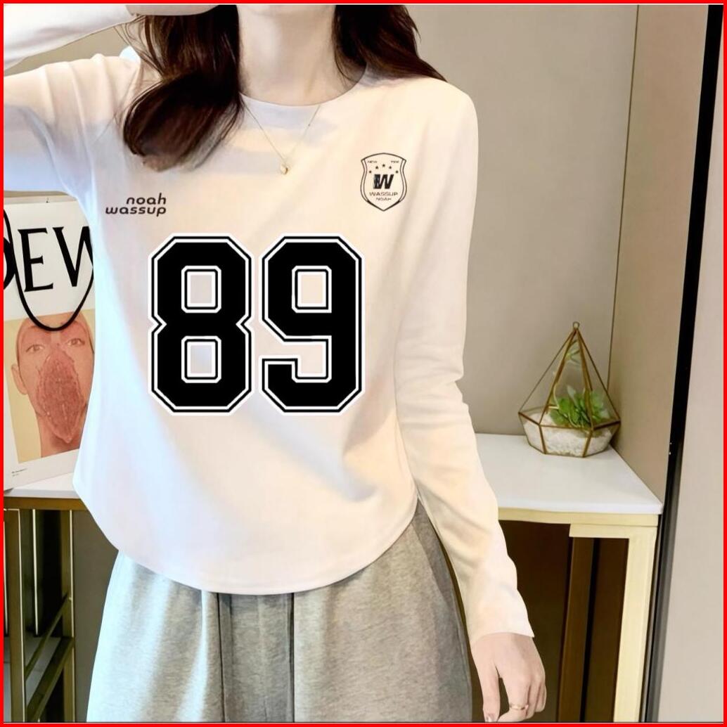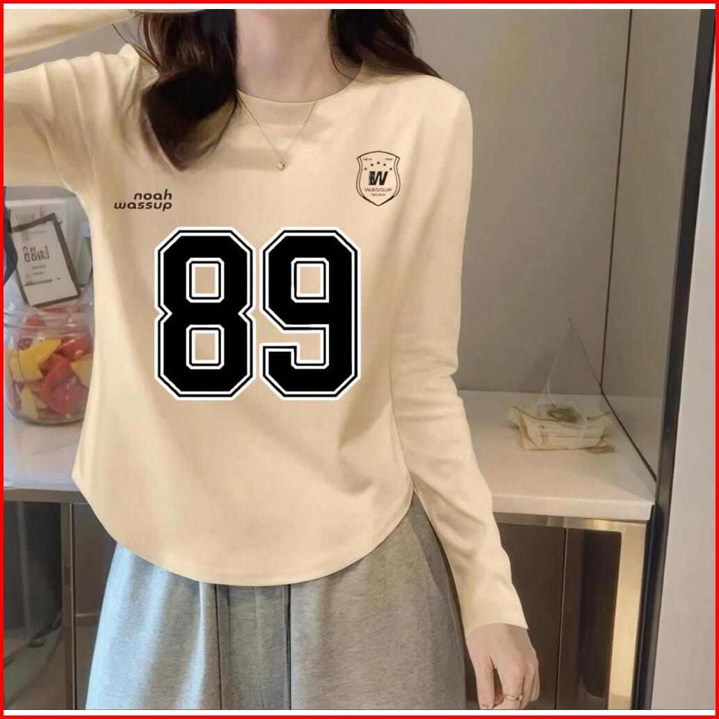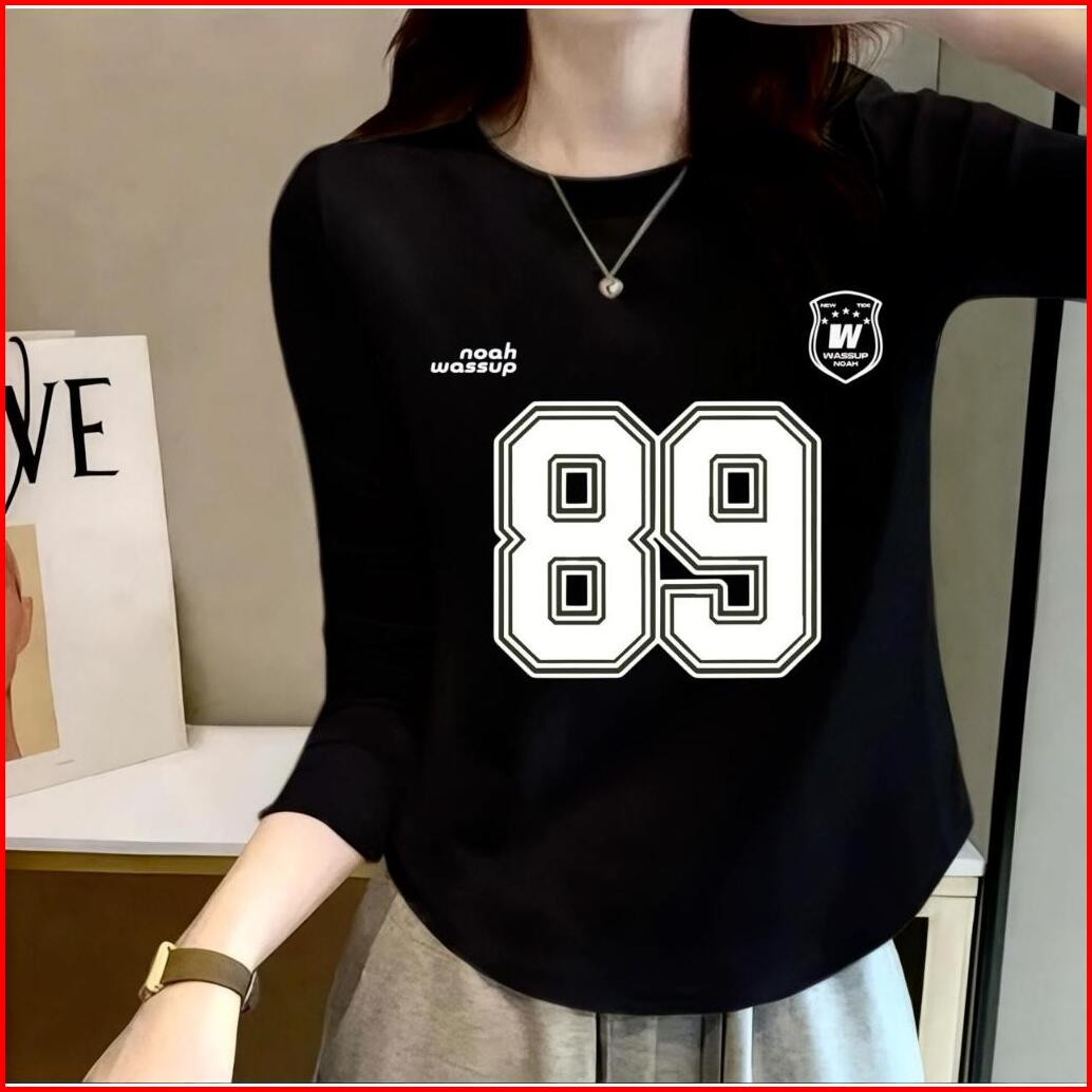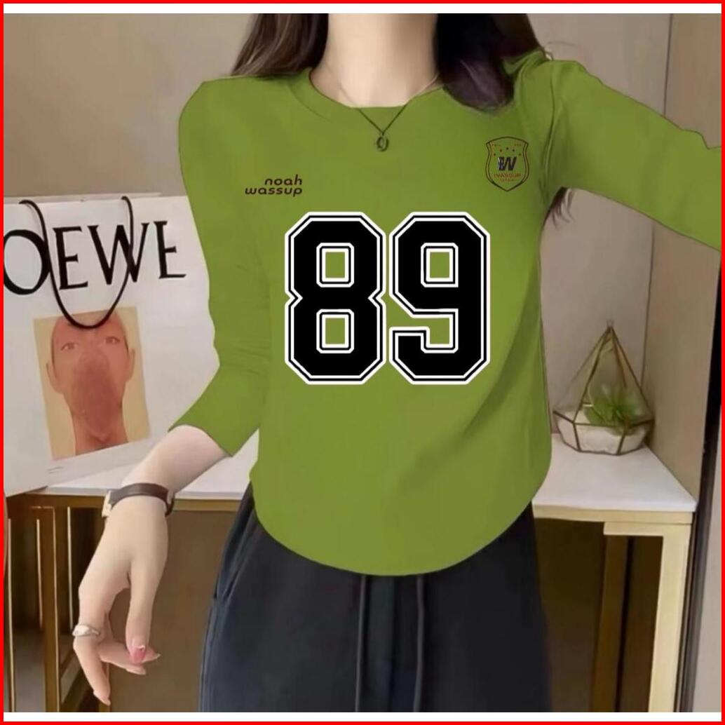 Kaos Oblong Wanita Spandek Kasual Model Oval Lengan Panjang Tshirt Distro Printing