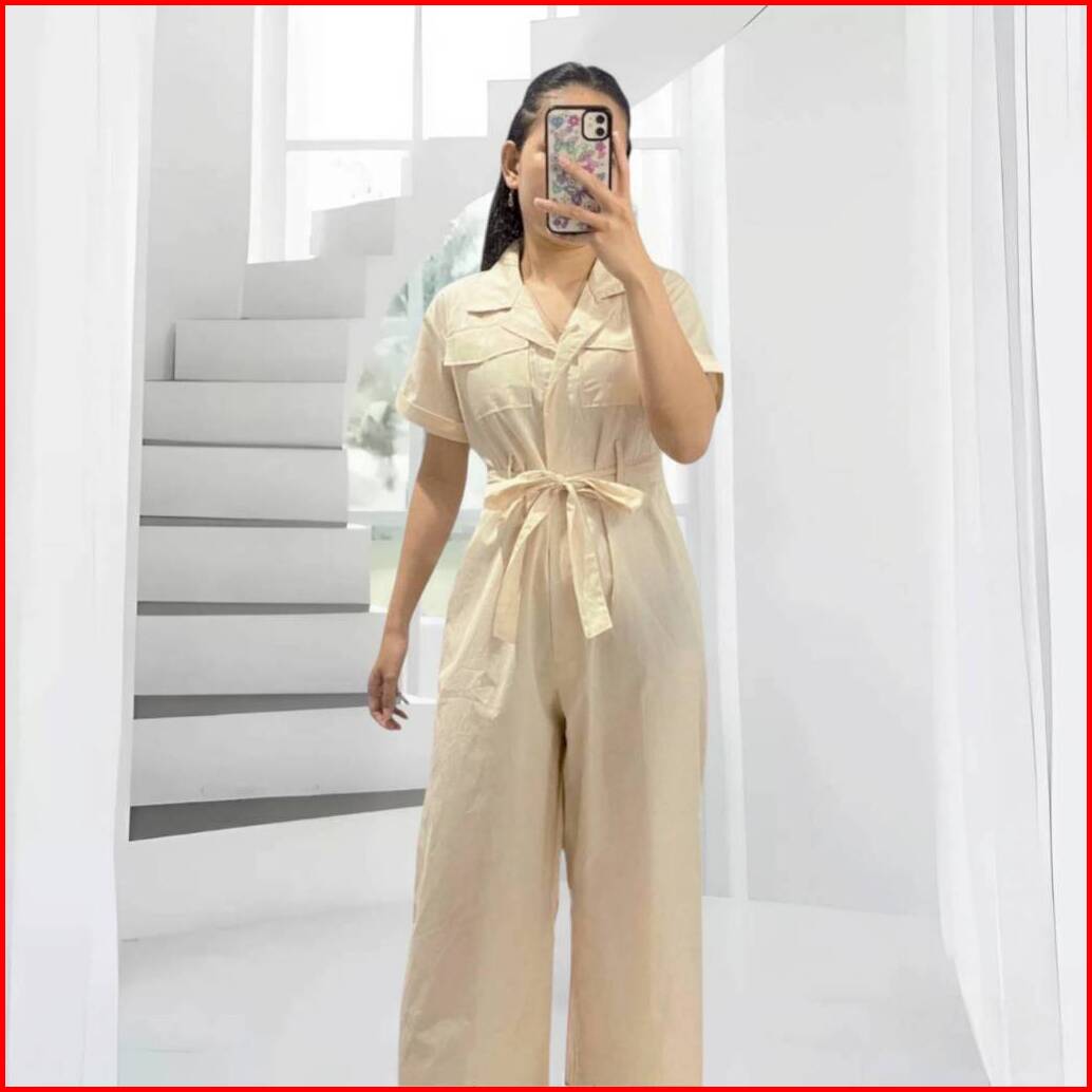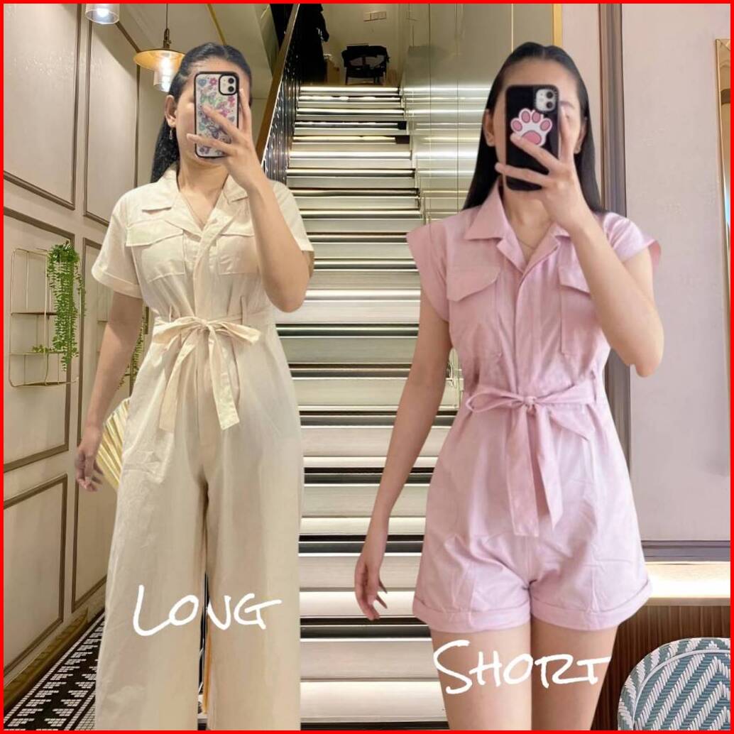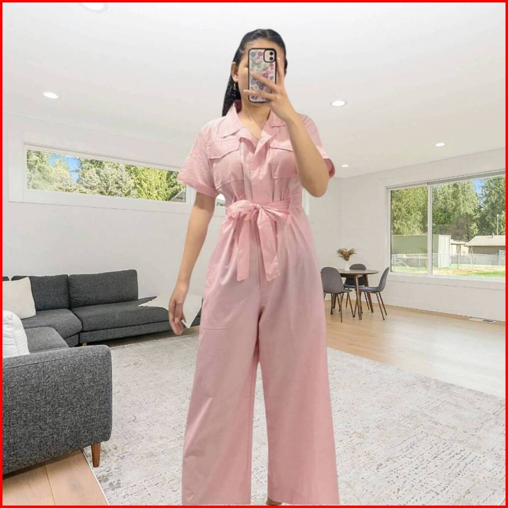 Katun Premium Baby Pink Agatha Long Jumpsuit Overall Jumper Kodok Wanita Kekinian Korea Korean Style Hijab Minimalis Baj