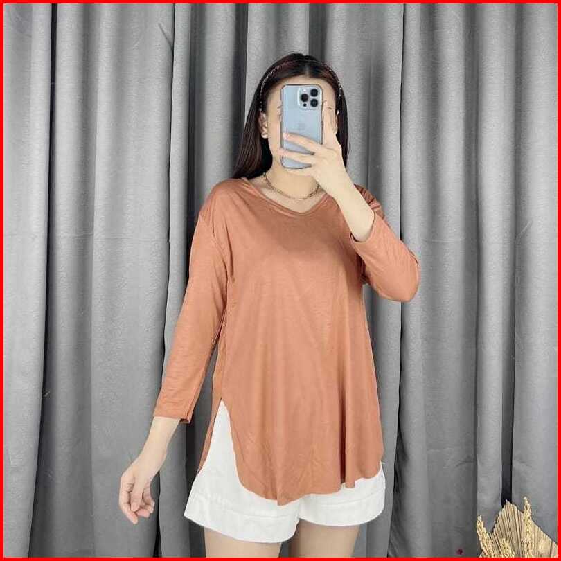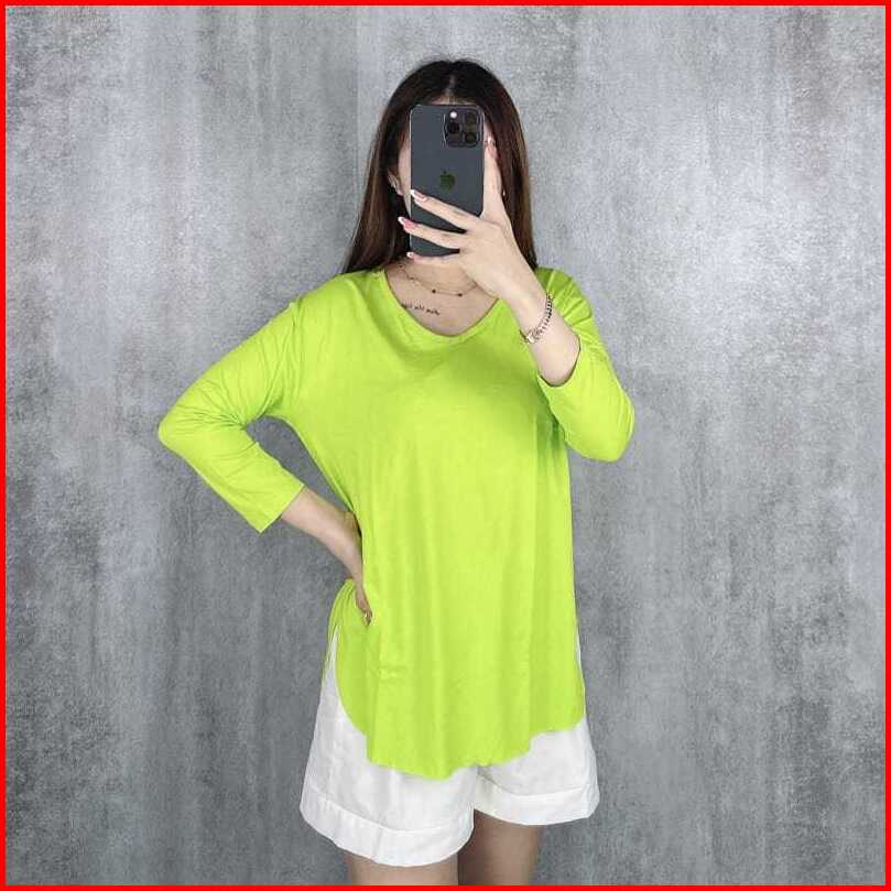 Kaos Polos Wanita Lengan 7 8 Bahan Spandek Adem