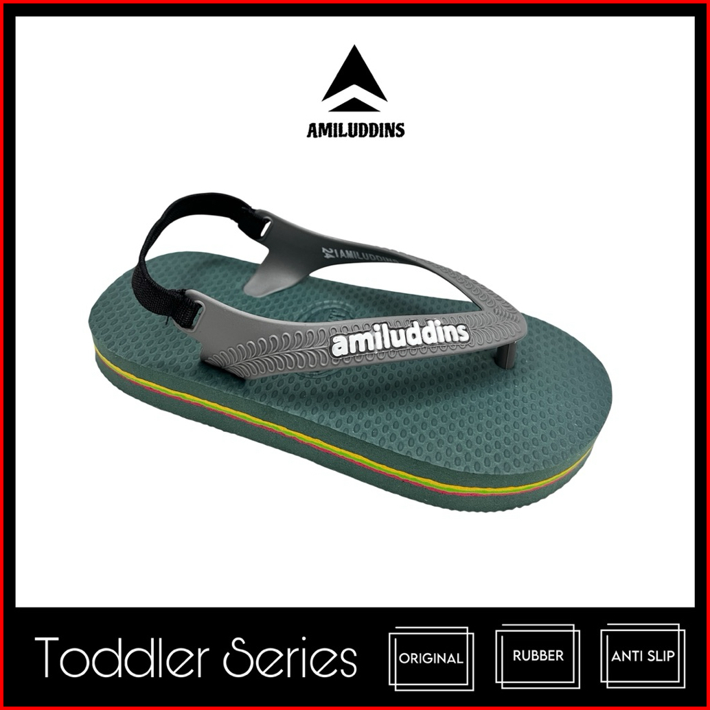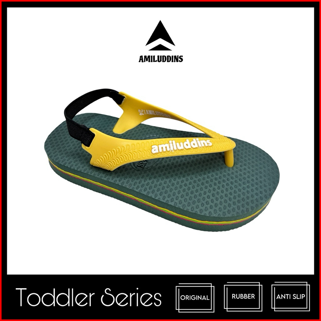 Amiluddins Toddler Sandal Jepit Bayi Karet Tali Belakang Usia 1-3 Tahun Lentur Anti Slip Army Kuning