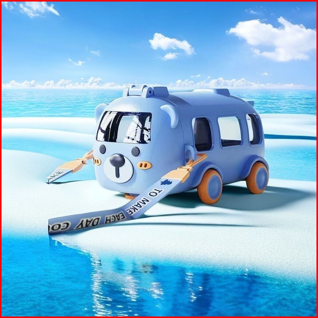 Botol Minum Anak Bentuk Mobil Bus Botol Tritan Mainan Anak Kapasitas 500 Ml Free Sedotan Tali Panjang Kode 448