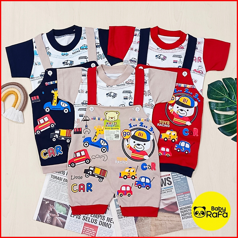 Setelan Baju Bayi Overall 6 - 12 Bulan Merk Sni Bolo - Bolo Motif Toys Racing Car