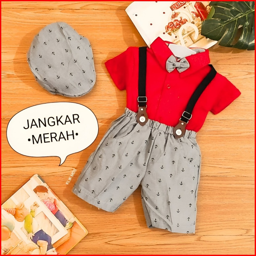 Mds Setelan Jumper Anak Bayi Laki-laki Motif Kumis Free Dasi Dan Topi 4 Ukuran Usia 0-18 Bulan