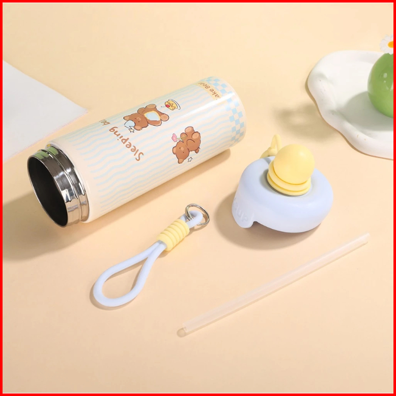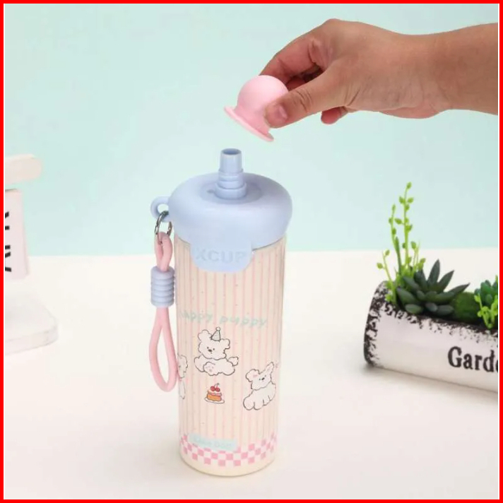 Tumbler Bottle Stainless Steel 600ml Botol Minum Anak Sedotan Cute Termos Air