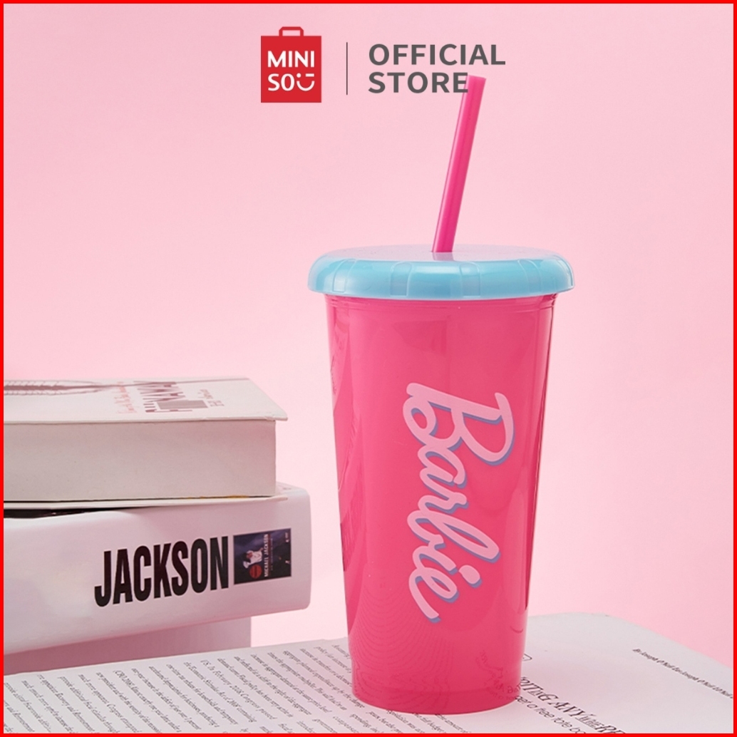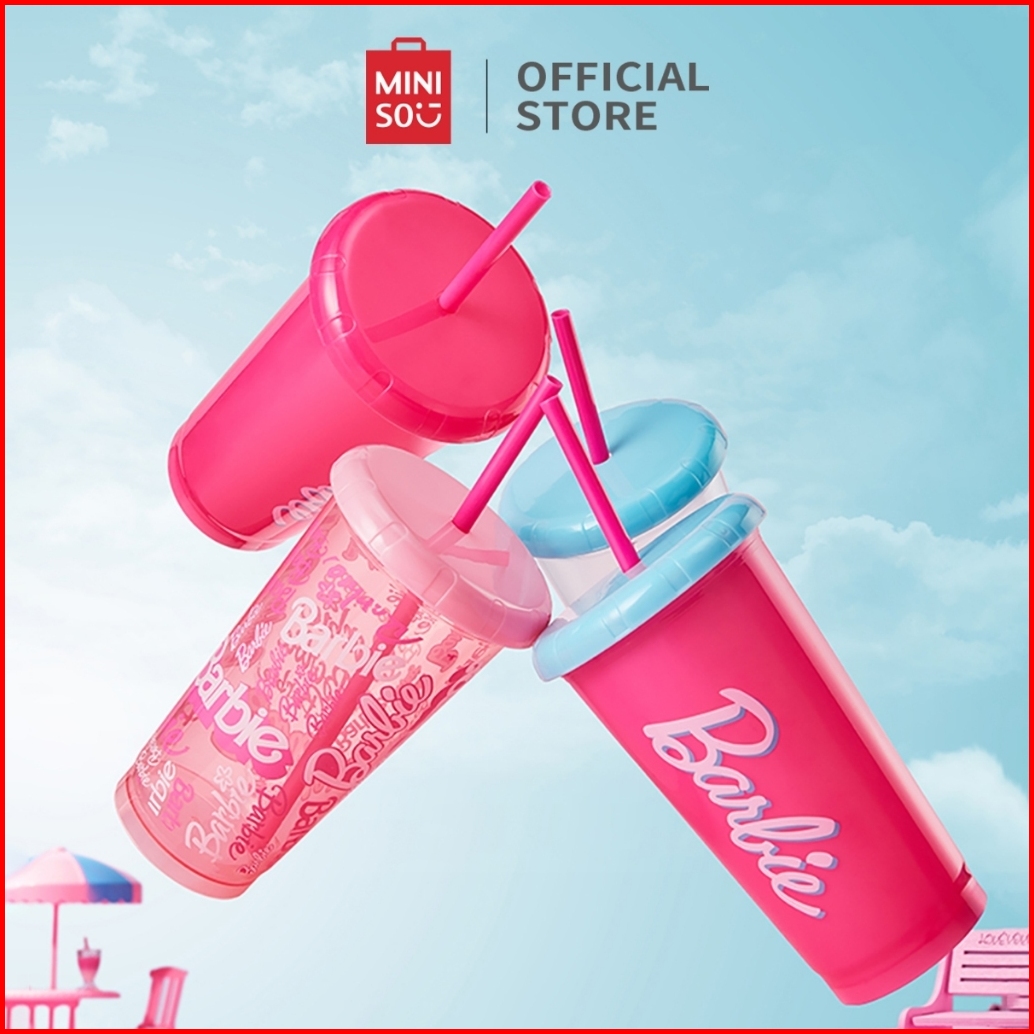 Exclusive Creator Miniso X Barbie Tumbler Plastik 520ml Isi 4 Pcs Gelas Minum Plastik Dilengkapi Sedotan