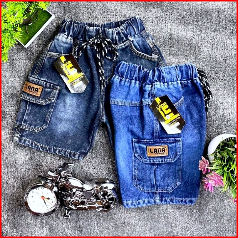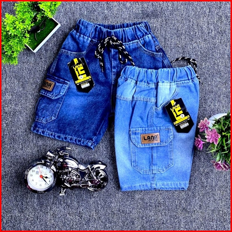 3 Pcs 100rb Celana Cargo Pendek Jins Anak By Lana Collection Usia 1-12 Tahun Kain Jin Halus Lwmbut Warna Snow