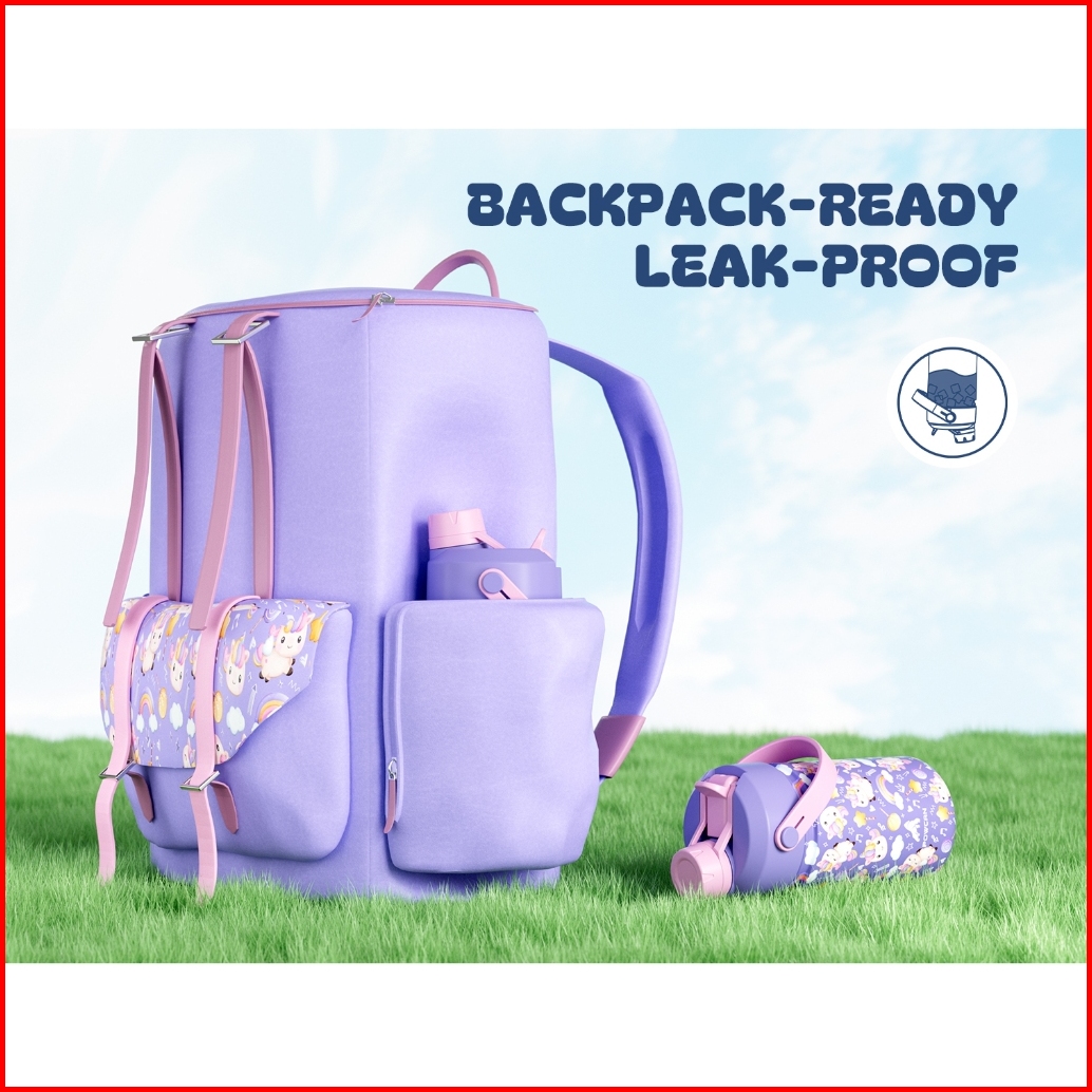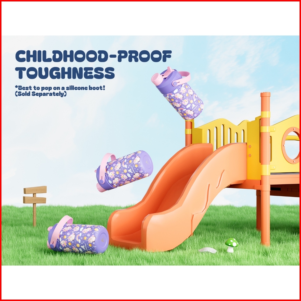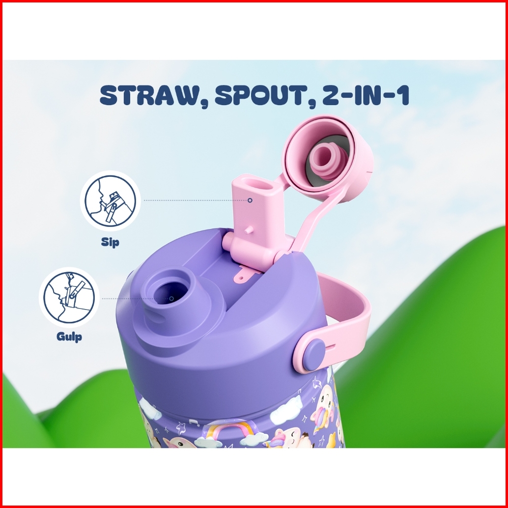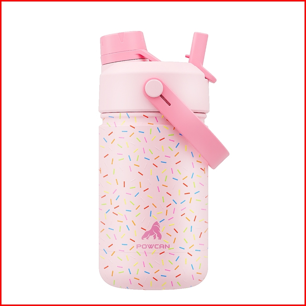 Powcan 12oz 350ml Gelas Termos Lucu Untuk Anak-anak Botol Minum Panas Dingin Stainless Steel 304 Dilengkapi Dengan Dua C