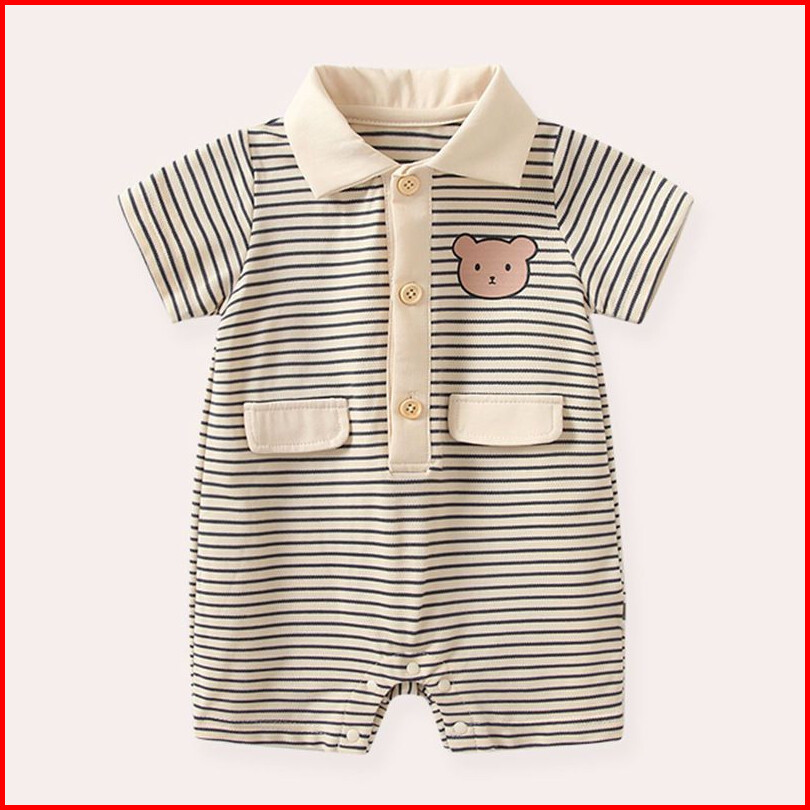 Babylovanta Jumper Bayi Pendek Laki Laki Motif Salur Bear Usia 3-18 Bulan Baju Bayi Lucu