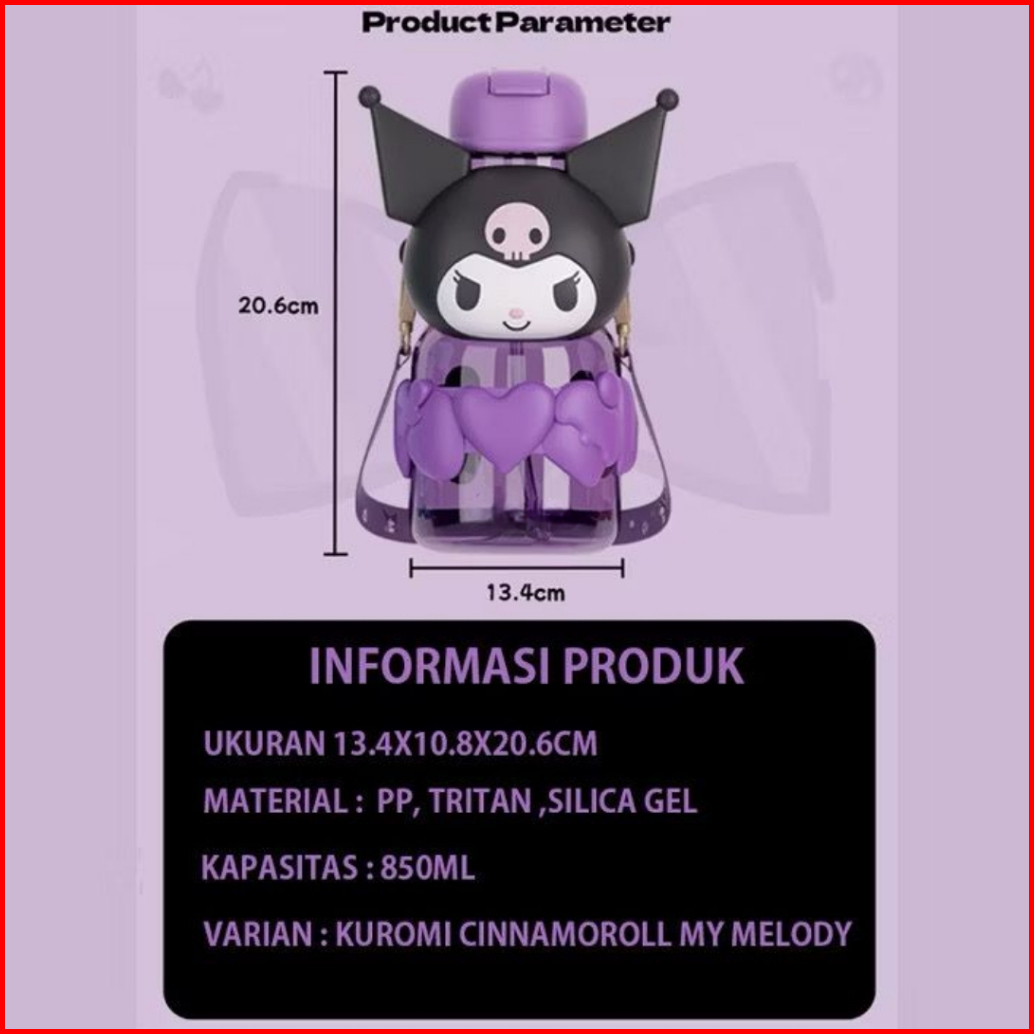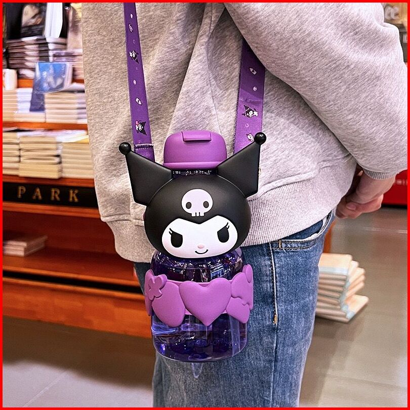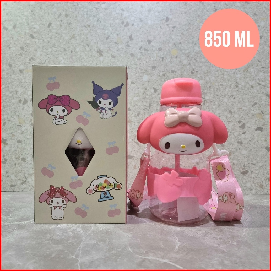 Botol Minum Anak Boneka Sanrio Kuromi Melody 850ml Botol Air Minum Tali Panjang Anak Sekolah