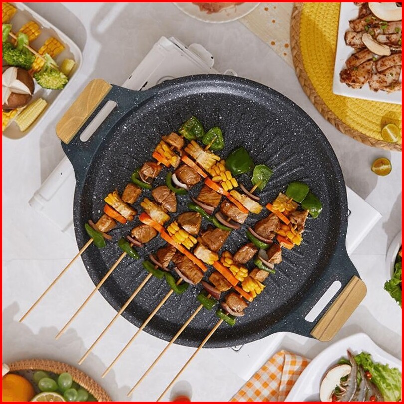 Wajan Pan Grill Anti Lengket Alat Grill Panggangpanggangan Bbq Bulat Kompor Wajanpemanggang Bbq Grill Pan Anti Lengketse
