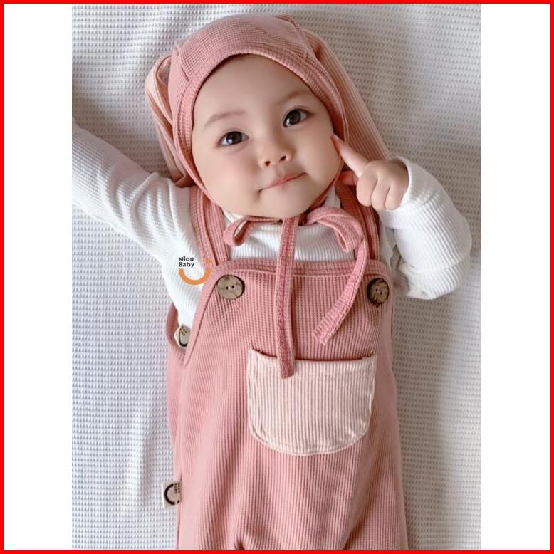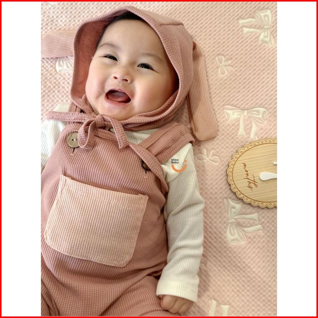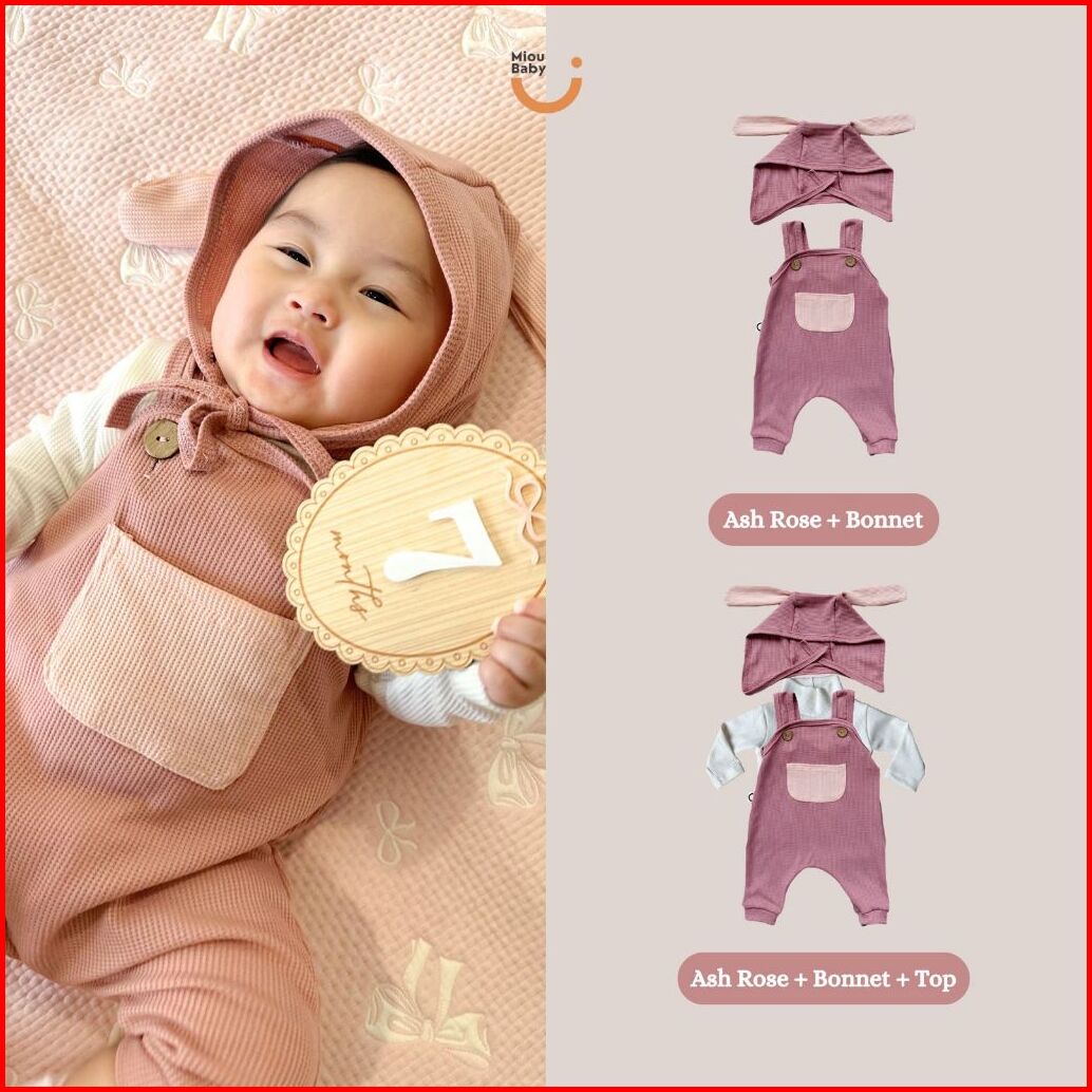 12.12 Sale Mioubaby Overall Pocket Seri Ash Rose Free Bonnet Overall Bayi Jumper Bayi Jumpsuit Bayi Playsuit Bayi Romper
