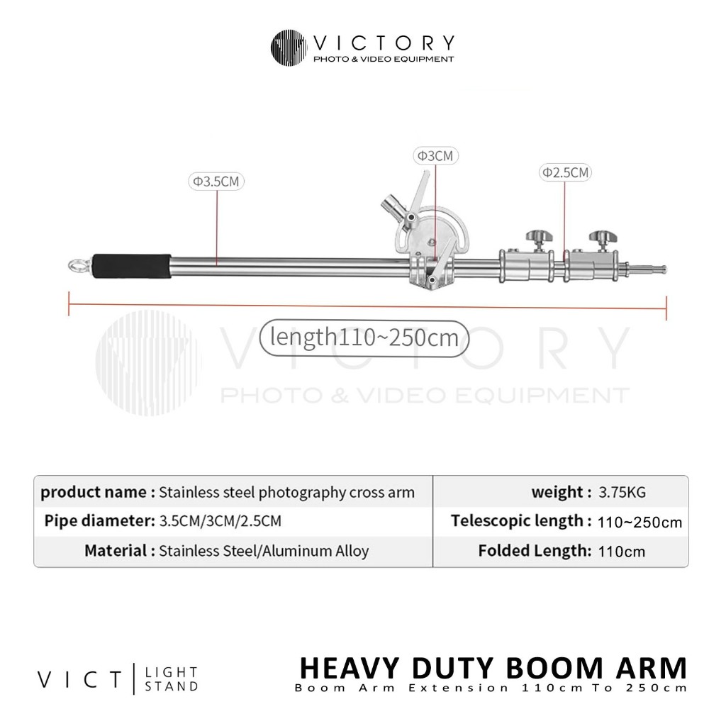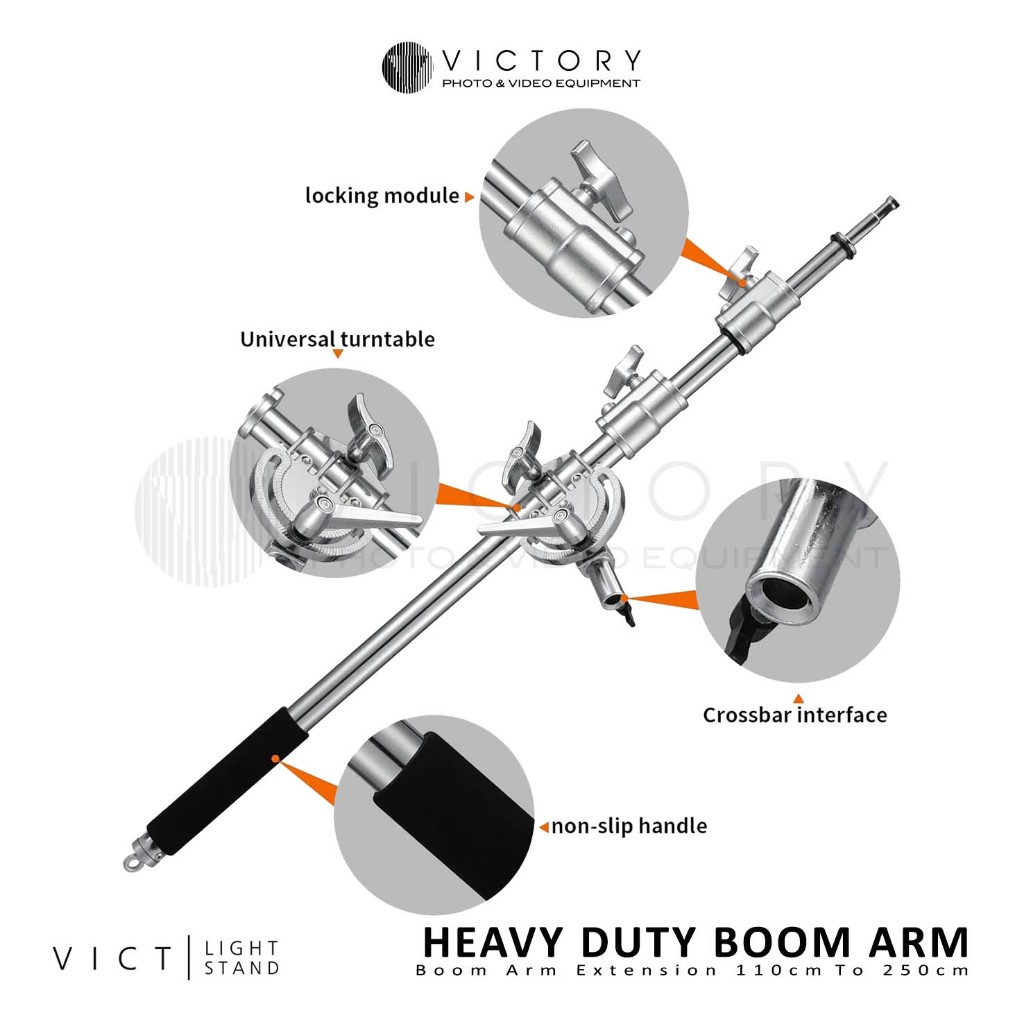 Heavy Duty Boom Arm Extension 110cm to 250cm Top Light, Boom Arm Besar Heavy Duty Max 250cm