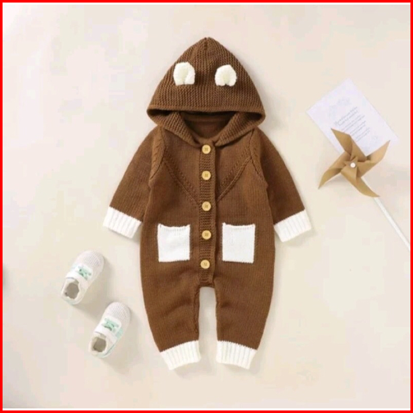 Jumper Bayi Newborn 0-10 Bulan Jumper Bayi Rajut Poket Bodysuit Bayi Laki Laki Dan Perempuan