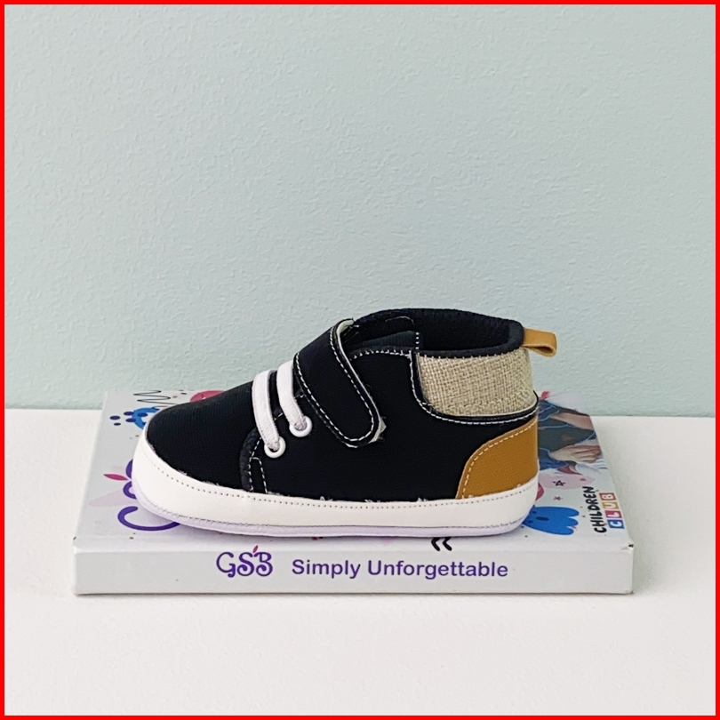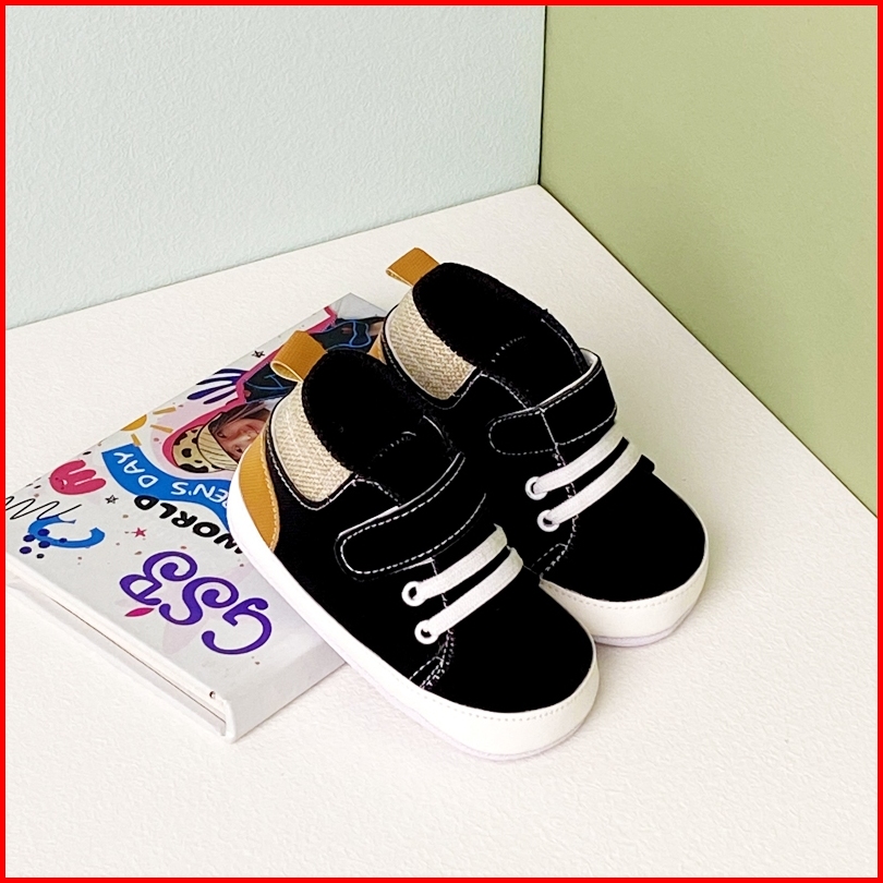 Sepatu Bayi Baby Shoes Prewalker Laki Laki Perempuan Umur 2 - 12 Bulan Model Basket Case Hitam