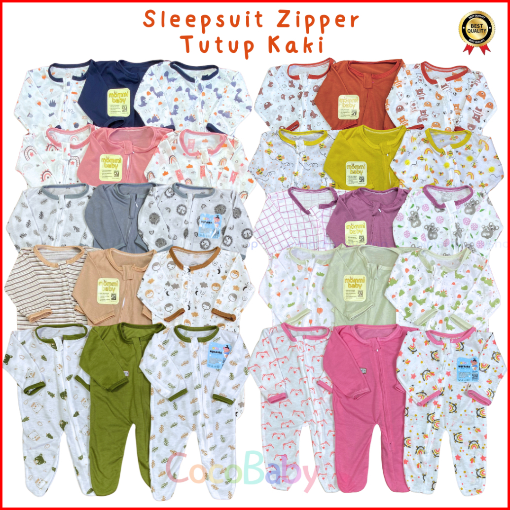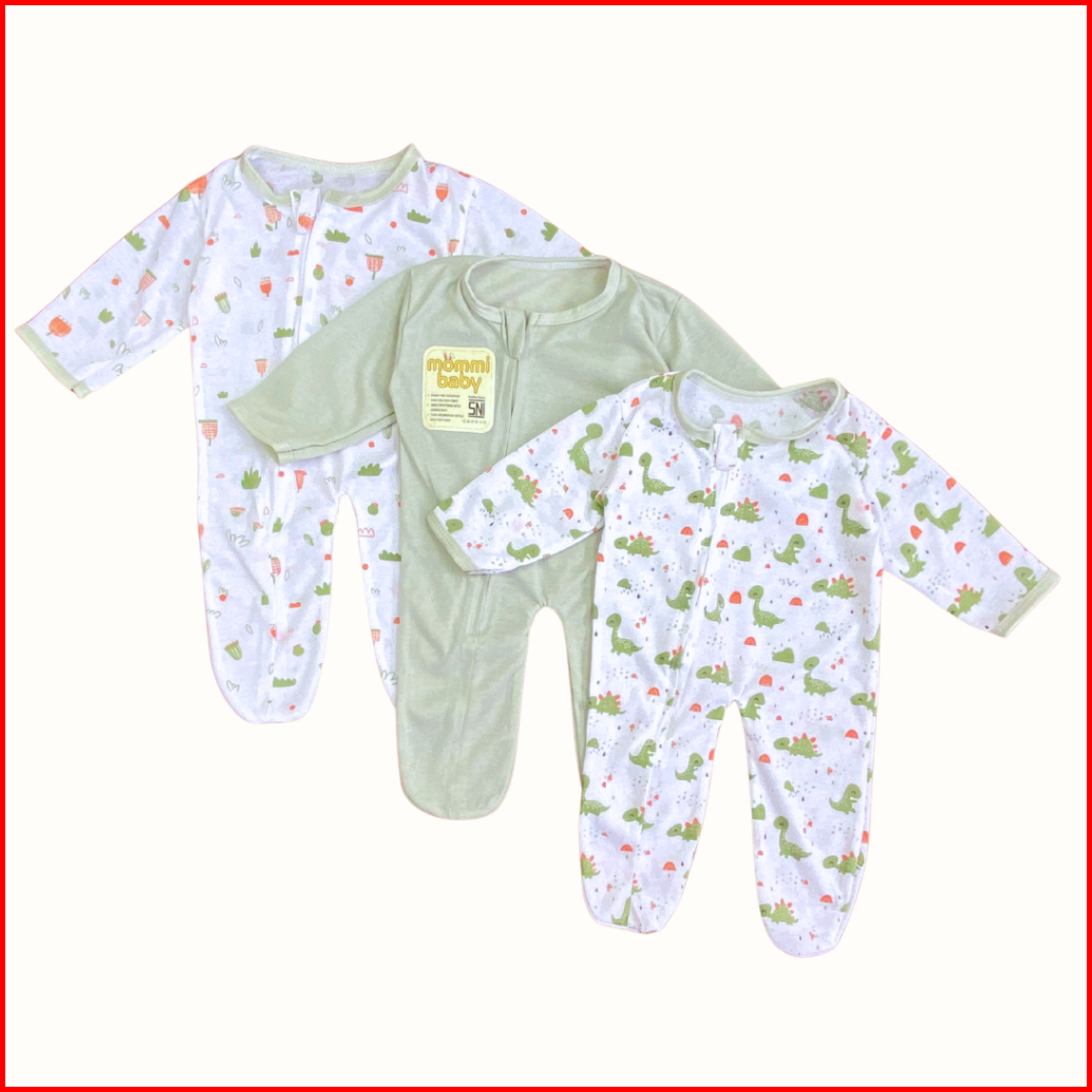 Isi 3 Pcs Sleepsuit Bayi Baru Lahir Zipper Tutup Kaki 0-3 Bulan Romper Bayi Newborn Jumper Jumpsuit Bodysuit Bayi Panjan