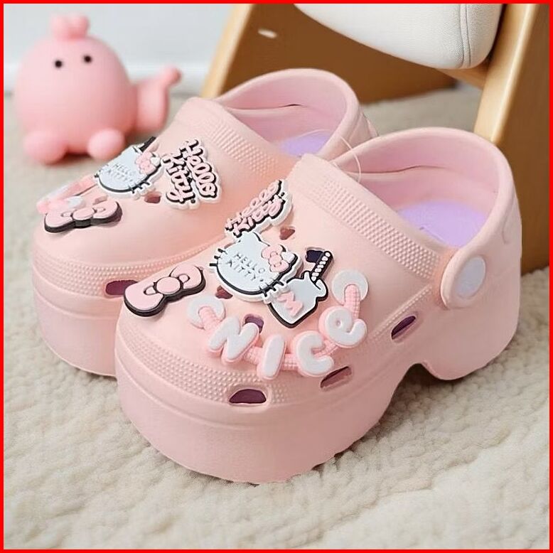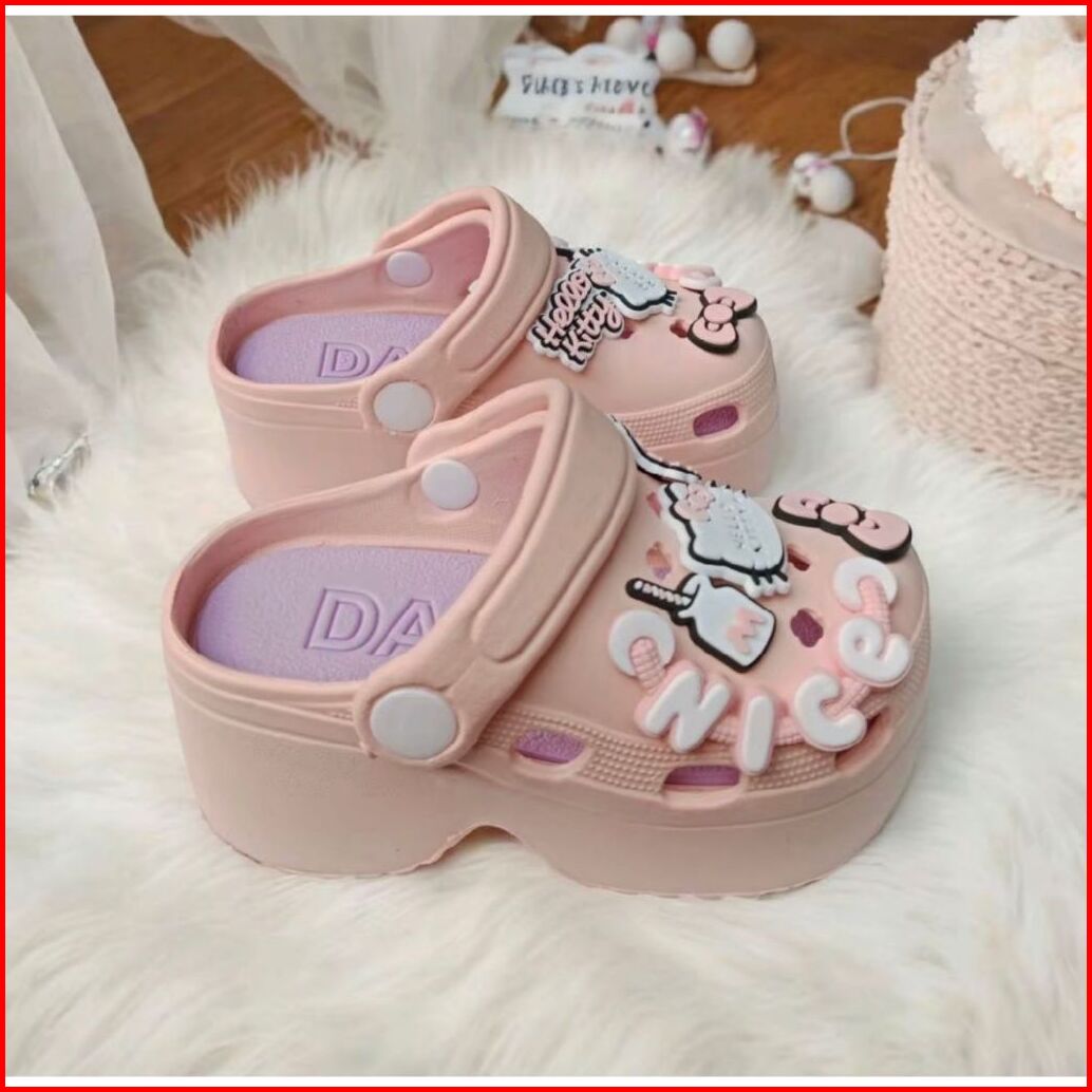 Sandal Wedges Baim Anak Perempuan Tali Belakang Sol Tebal Dengan Desain Karakter Lucu